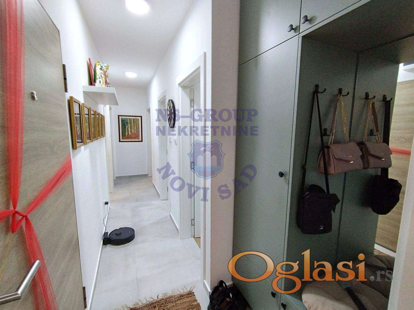 Izuzetno funkcionalan, četvorosoban stan koji se sastoji od dnevnog boravka sa trpezarijom i kuhinjom, tri spavaće sobe, kupatila i zasebnog toaleta. Stan raspolaže sa dve terase - jednom velikom, zastakljenom, idealnom za uživanje tokom cele godine i jednom otvorenom. U ceni je uključena kvalitetna kuhinja sa kompletnom tehnikom, ormar na terasi i jedan u spavaćoj sobi, cipelarnik, kao i kompletno opremljeno kupatilo bez veš mašine. Grejanje je podno na toplotne pumpe, što obezbeđuje niske mesečne troškove i visok nivo komfora. Oko zgrade postoje biciklana, dečije igralište, kao i parking mesta. U neposrednoj blizini je Osnovna škola, vrtić, Dom zdravlja, autobusko stajalište, market i sve što Vam je potrebno za svakodnevni život.