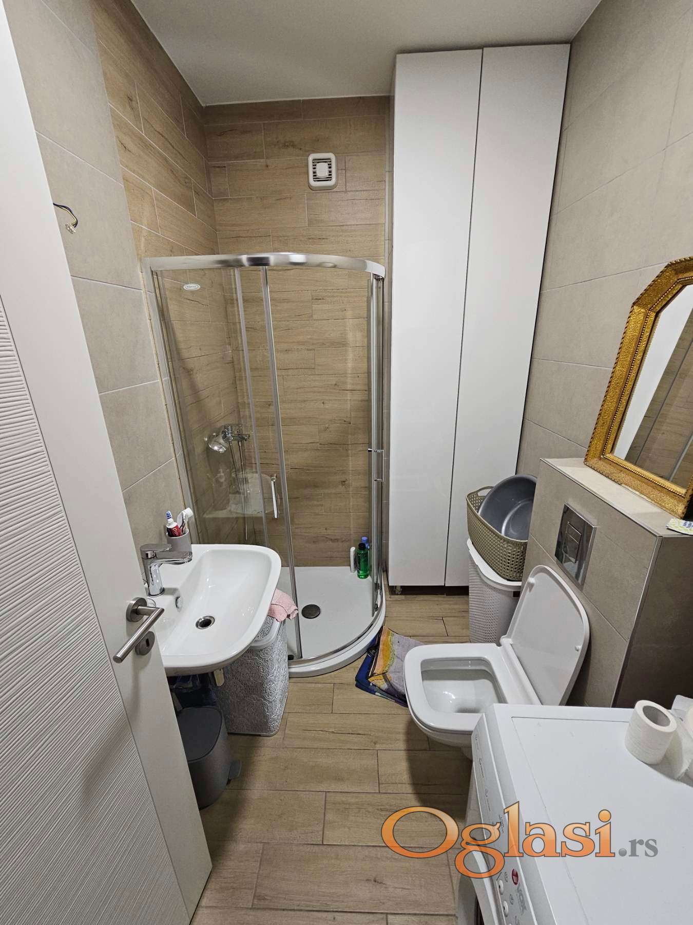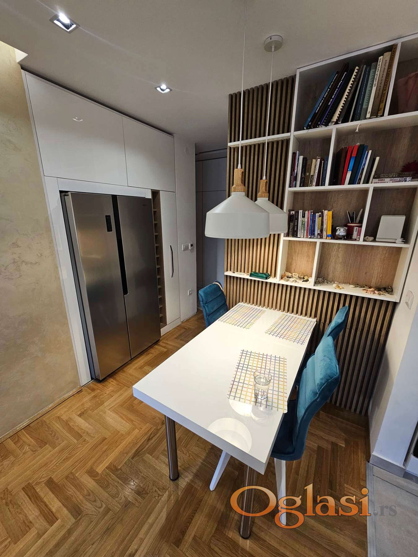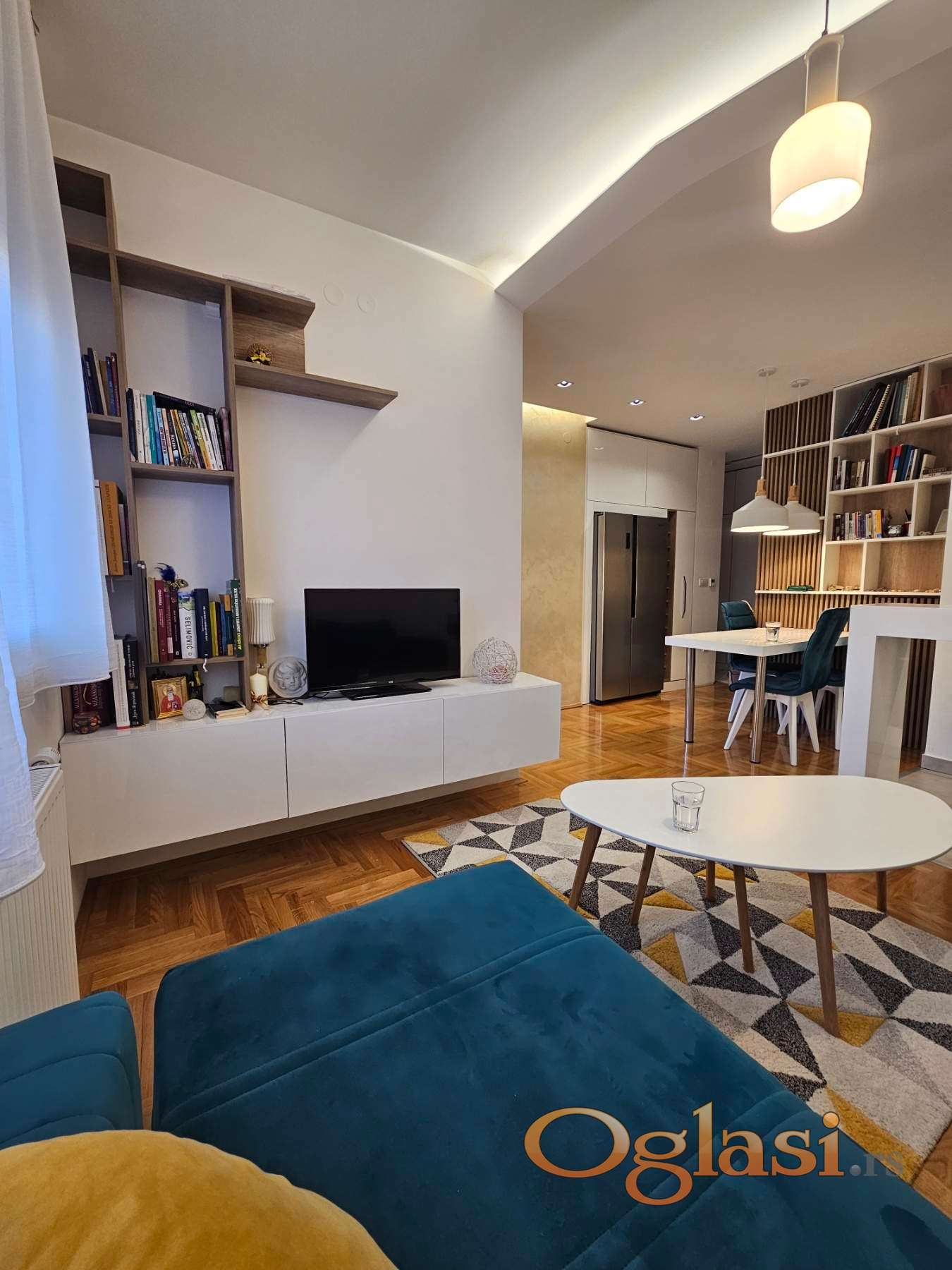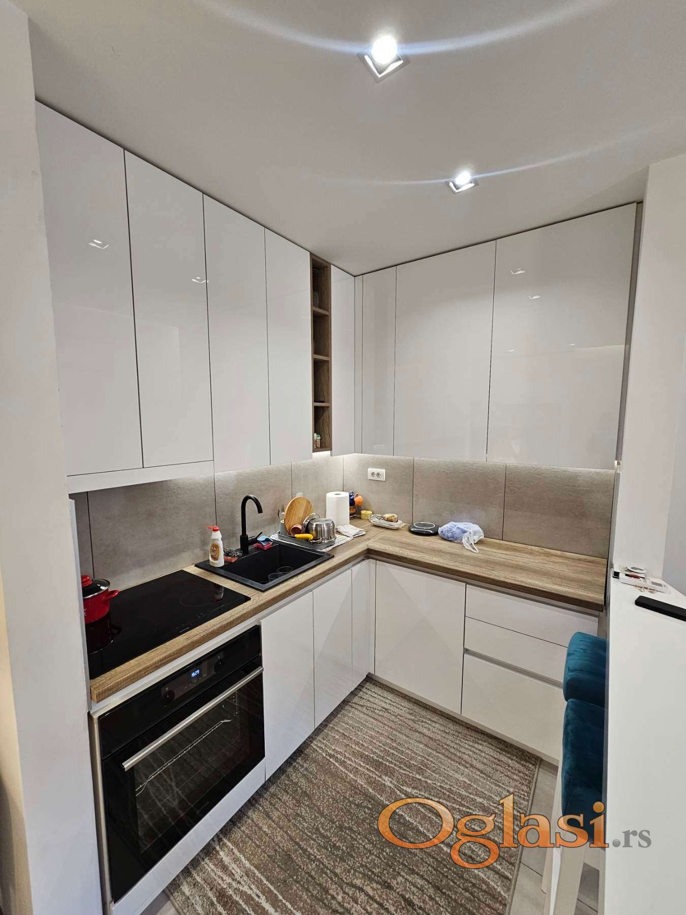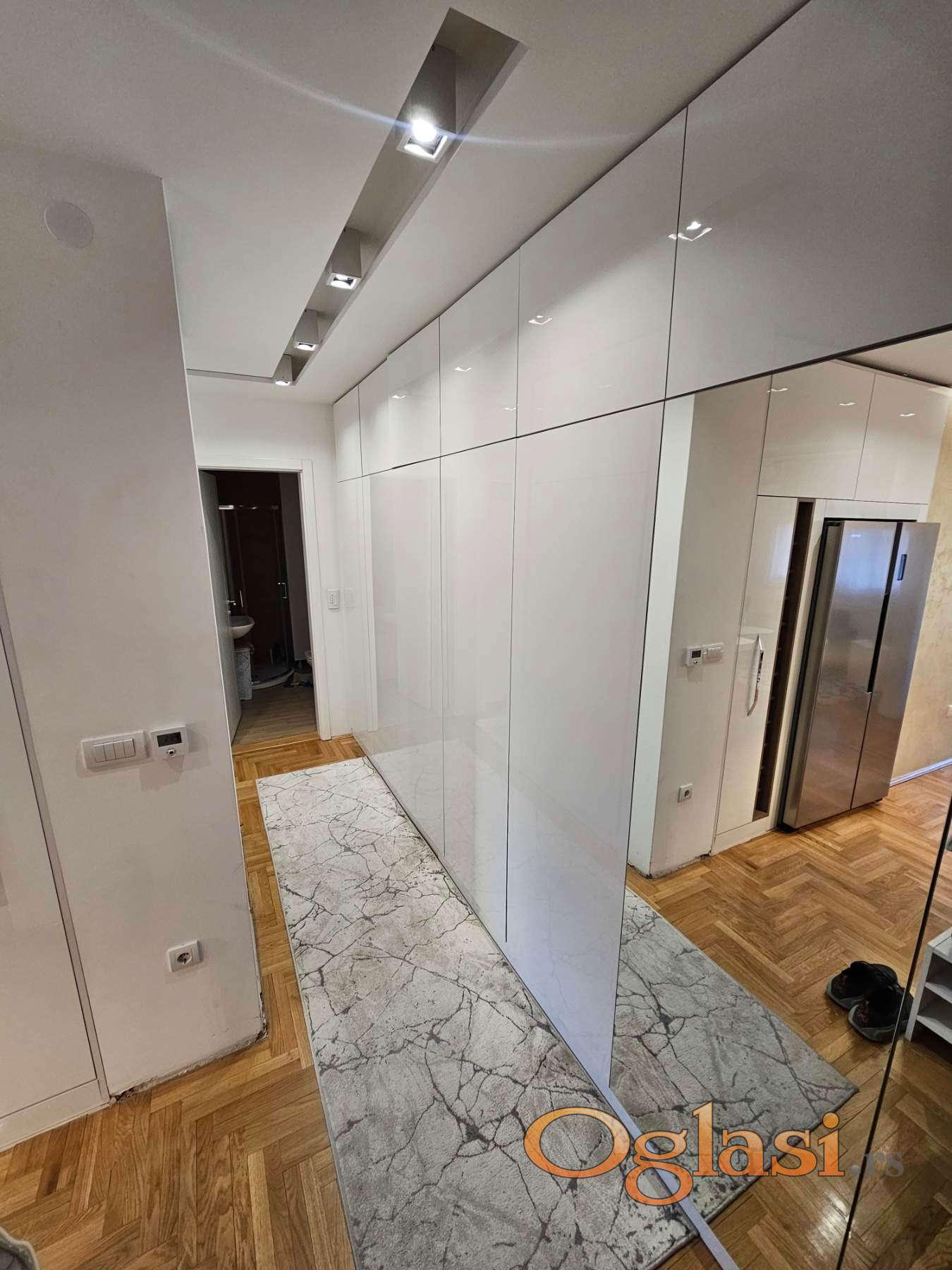 Enterijer je moderan i pažljivo osmišljen. Stan se prodaje kompletno namešten, bez potrebe za dodatnim ulaganjima. Nameštaj je rađen po meri, sa kvalitetnim materijalima i ukusno uklopljenim detaljima, izuzev kreveta i pojedinih stolova. Sve prostorije su funkcionalne, svetle i maksimalno iskorišćene.