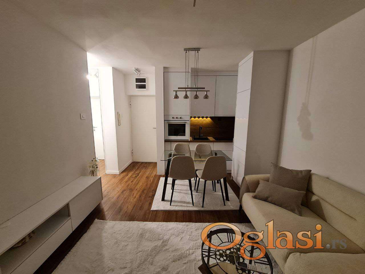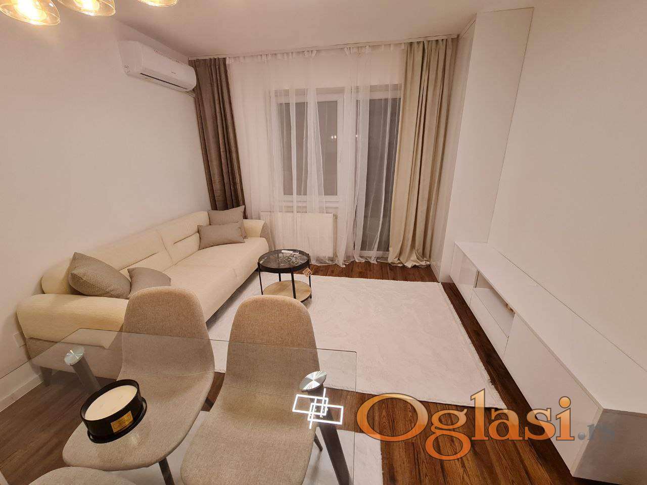 Sav nameštaj u stanu je potpuno nov i nekorišćen i ostaje u stanu.