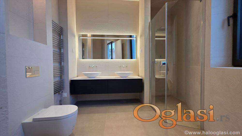 Stan je vrlo komforan, poseduje prostrani open space - dnevni boravak sa trpezarijom i kuhinjom, master sobu sa sopstvenim kupatilom, još jednu manju spavaću sobu, dodatno kupatilo, tehničku sobu i terasu. Stan je dvostrano orijentisan - s jedne strane je okrenut ka Uzun Mirkovoj ulici, sa delimičnim pogledom na park Kalemegdan, dok s druge strane gleda ka Dunavu. Uz stan se prodaje i garažno mesto sa ostavom 8m2, po ceni od 70.000 eur. Postoji mogućnost kupovine dodatnog garažnog mesta. Stan je pogodan kako kao poslovni, tako i kao stambeni prostor. Prodaje se polunamešten.Nije poslednji sprat.