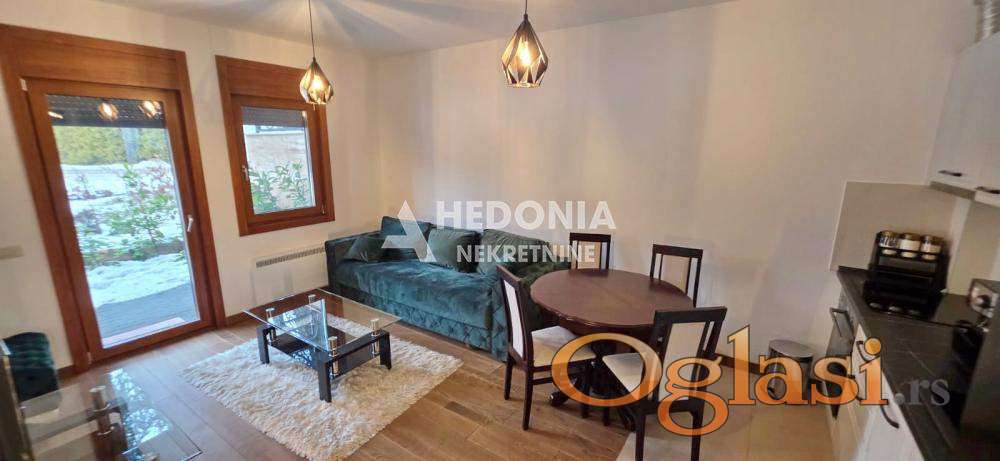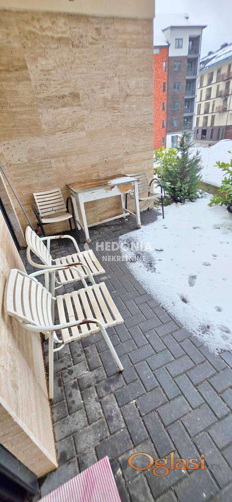 Zlatibor je područje jedinstvene ekološke, biološke, kulturne i estetske vrednosti, očuvanih predela, živopisnih pejzaža, livada, pašnjaka i stoletnih borovih šuma, sa vrednim objektima narodnog graditeljstva i kulturno istorijskog nasleđa. Planina izuzetne lepote čija su posebna geografska svojstva učinila da bude pravi dragulj zapadne Srbije. Mesto koje nudi širok spektar mogućnosti i aktivnosti u vidu sporta, rekreacije, relaksacije, kao i zabavnog programa kako za stariju, tako i za mlađu populaciju. U užem centru Zlatibora, u neposrednoj blizini Titove vile, nalazi se ovaj dvosoban stan za prodaju. Smešten je u prizemlju uredne i održavane zgrade sa liftom. Infrastruktura je dobra, svi neophodni sadržaji za ugodan i lagod život su na dohvat ruke. Stan je luksuzan i svetao. Sastoji se od: dnevno-kuhinjsko-trpezarijskog dela, sa izlazom na terasu, ulaznog hodnika, spavaće sobe i kupatila. Stan se prodaje namešten. Za svaku preporuku, naročito za one koji vole prirodu i mir.