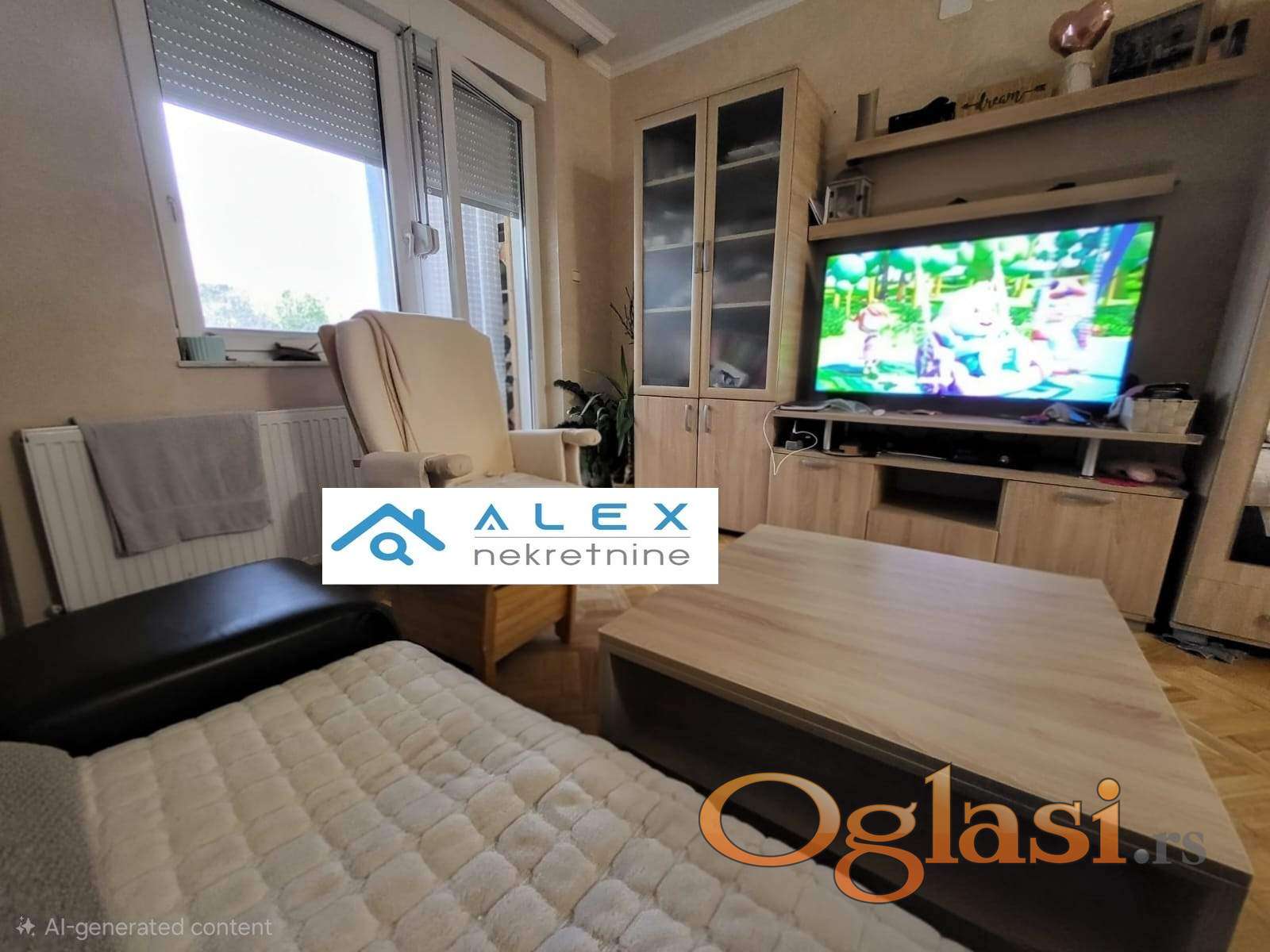 Blizina škola, vrtića i svih neophodnih sadržaja.Saobraćajna povezanost, u blizini autobusko stajalište 8, 3, 13 i 7. U cenu je uračunata i agencijska provizija.Za više informacija kontaktirati 069-50-11-004 ALEX Nekretnine Reg br 1640