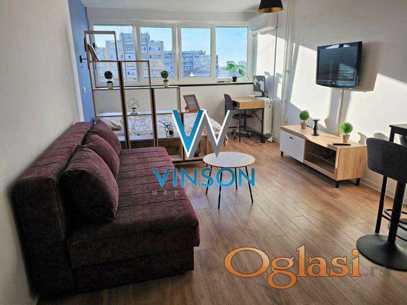 Novi Sad, Bulevar oslobođenja. Predstavljamo odličnu renoviranu garsonjeru koja se nalazi na jednoj od najatraktivnijih lokaciji za stanovanje. Nalazi se u neposrednoj blizini osnovne škole i vrtića, glavne autobuske i železničke stanice, centra grada... Ovaj stambeni prostor čini jedna soba sa kuhinjom, deganžman i kupatilo sa tuš kabinom. Stan je dvorišno orijentisan, izolovan od gradske buke. Pozicionirana na VIII spratu uredne stambene zgrade sa liftom. Prodaje se nameštena (nameštaj i tehnika prikazani na fotografijama). Uknjižena. (Vinson nekretnine, Novi Sad, Reg. br. posrednika: 1085)