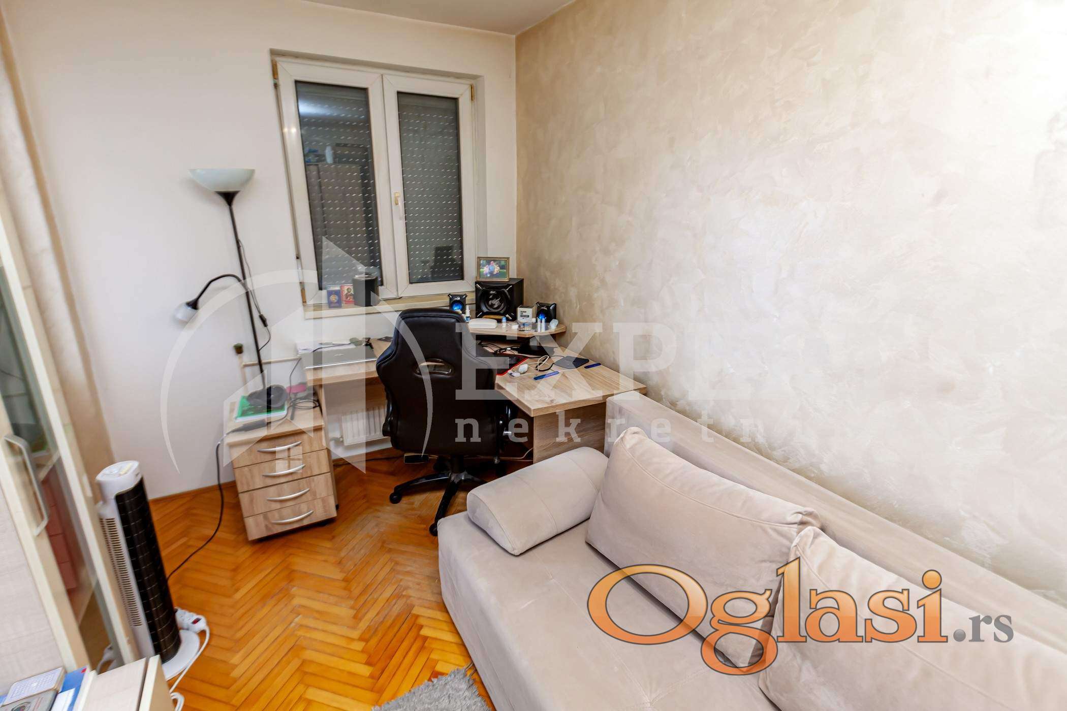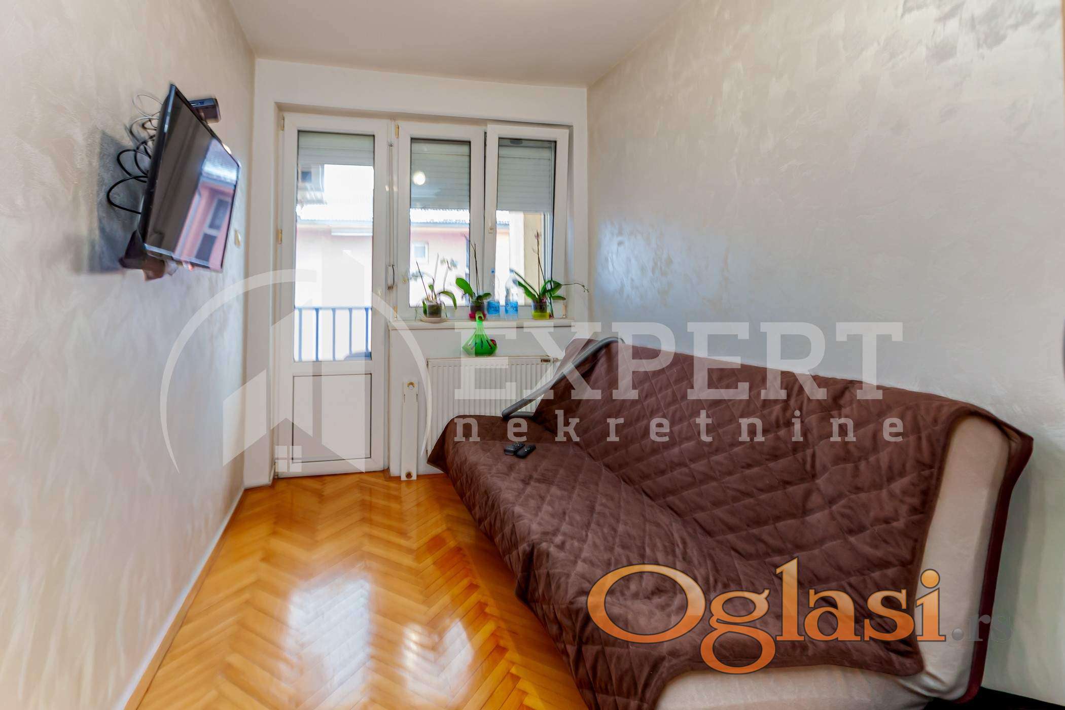 Na prodaju dvoiposoban stan na lepoj lokaciji, kako za stanovanje, tako i za izdavanje. Stan se nalazi na Ledenoj steni. U blizini su Osnovna škola, marketi, autobusko stajaliste, par minuta vožnje do samog centra grada. Stan je po strukturi dvoiposoban, površine 46 m2. Sastoji se od hodnika, dnevne sobe sa kuhinjom i trpezarijom, dve odvojene sobe, kupatila i terase. Stan se nalazi na četvrtom spratu u zgradi kvalitetne gradnje, bez lifta. Bez ulaganja, pvc stolarija sa komarnicima i roletnama, podovi od parketa, u kupatilu i kuhinji keramičke pločice... Centralno grejanje. Stan se prodaje sa pripadajućim parking mestom. Uknjižen, svojina 1/1. Ovo je samo deo naše ponude, za više informacija javite se I posetite naš sajt.