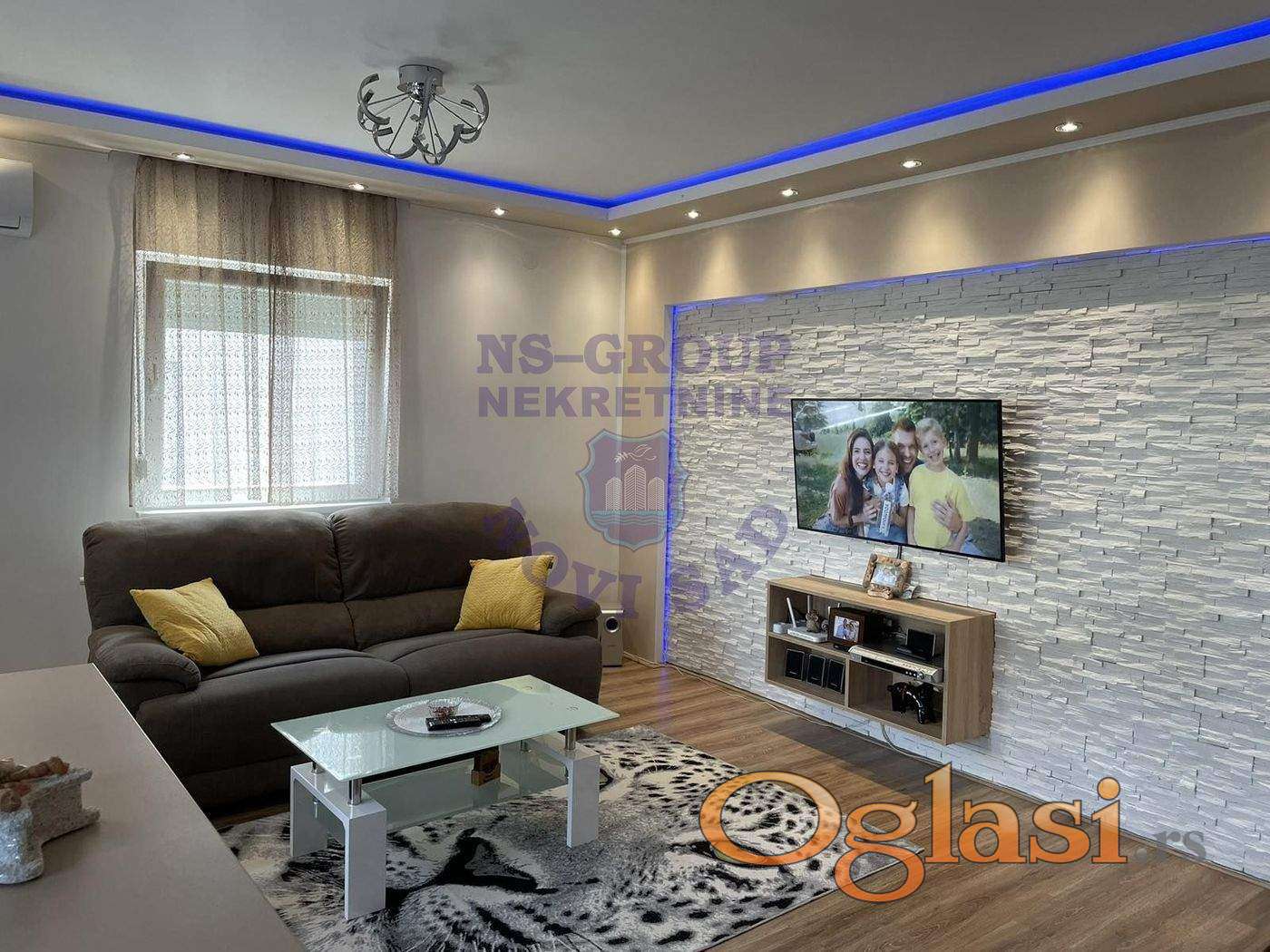 Predstavljamo Vam lepo enterijerki uređen i funkcionalan četvorosoban stan, trostrano orijentisan, u mirnom delu grada Novog Sada sa pogledom na Frušku Goru. Nalazi se na prvom spratu novoizgradjene urbane vile koja ima samo dva sprata. Uknjižen, po listu nepokretnosti je povrsine 76 m2, vlasnici supružnici, može se kupiti i na kredit. Stan se prodaje sa ful opremljenošću novom tehnikom i novim nameštajem, svojim parking mestom koje je obeleženo rampom sa elektronskim podizanjem i spuštanjem, poseduje dve terase, prostran dnevni boravak sa trpezarijom i kuhinjom, komforan deganžman sa ugradjenim plakarima, kupatilo i tri spavaće sobe od koje dve izlaze na terasu. U blizini se nalaze osnovna škola, dom zdravlja, prodavnica, vrtić, reka Dunav sa kejom za šetnju i vožnju biciklom. Takodje u blizini je trening centar FK Vojvodine. Grejanje je regulisano sopstvenim toplotnim pumpama, koje iziskuju niske troškove samo u sezoni grejanja. Ove godine je stavljenja nova klima marke Bosh koja je još pod garancijom, kao i sva bela tehnika koja je takodje iste marke. Internet Wf, ima linija za fiksni telefon, kao i tri televizora sa kablovskim MTS operaterom. Ako tražite tako nešto, na pravom ste mestu! Nemojte propustite priliku i pozovite nas za više informacija ili svratite do naše agencije.