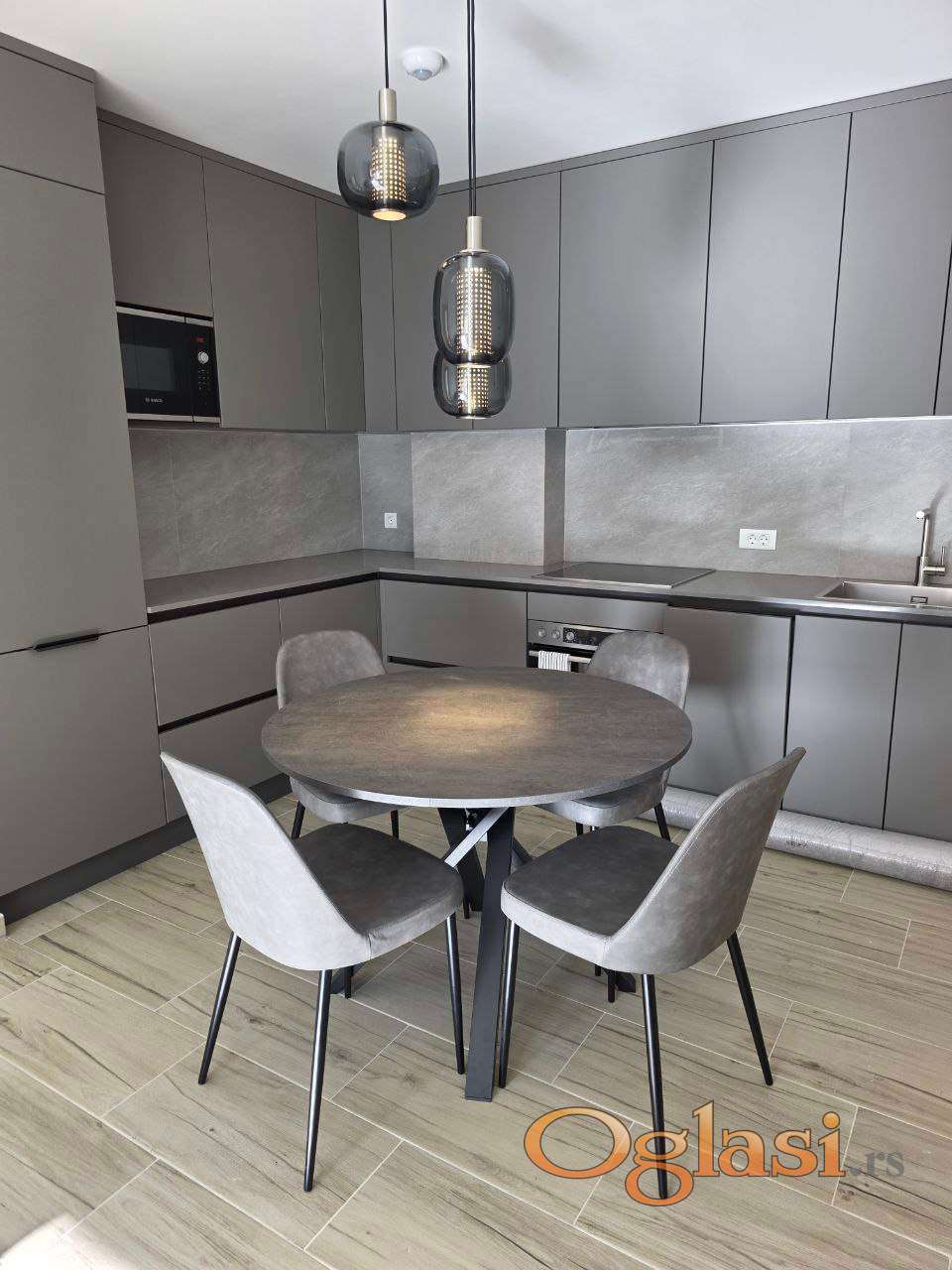 — Kuhinja s Gorenje aparatima: frizider sa zamrzivačem, štednjak, pećnica, perilica posuđa i mikrovalna pećnica
