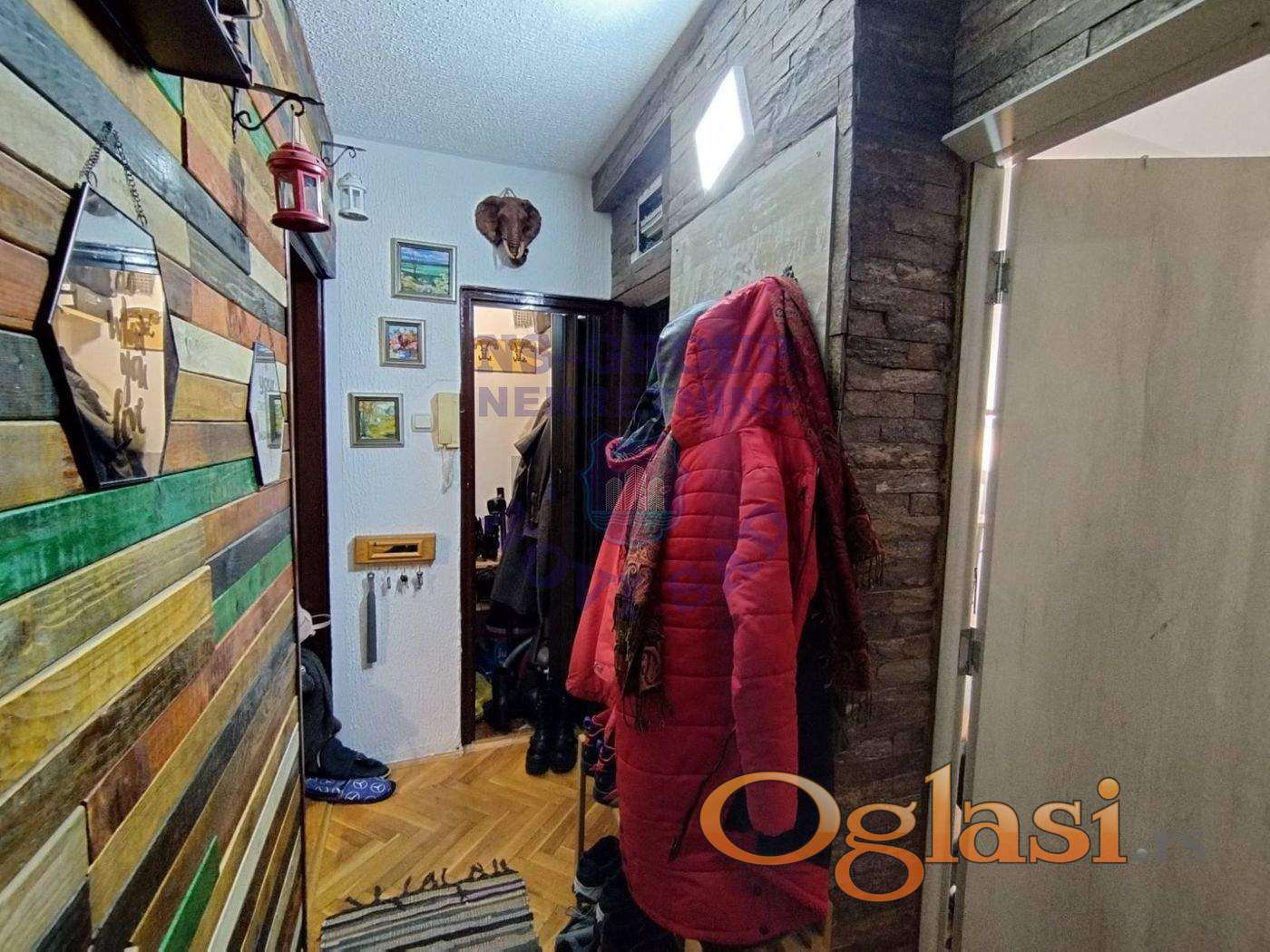 Delimično renoviran trosoban stan sa promenjenom stolarijom. Dnevni boravak je proširen zatvaranjem terase, čime je dobijen dodatni, funkcionalan prostor. Stan je dvorišno orijentisan, što obezbeđuje mir i prijatan ambijent, uz dosta zelenila oko zgrade. U cenu je uključena kuhinja sa tehnikom, dok je za ostatak nameštaja moguć dogovor. Pripadajuća podrumska prostorija. Zgrada poseduje dva lifta, od kojih je jedan nov. Nekretnina se nalazi se na lokaciji koja je u blizini svega što je potrebno za svakodnevni život, sa odličnom povezanošću sa ostalim delovima grada.