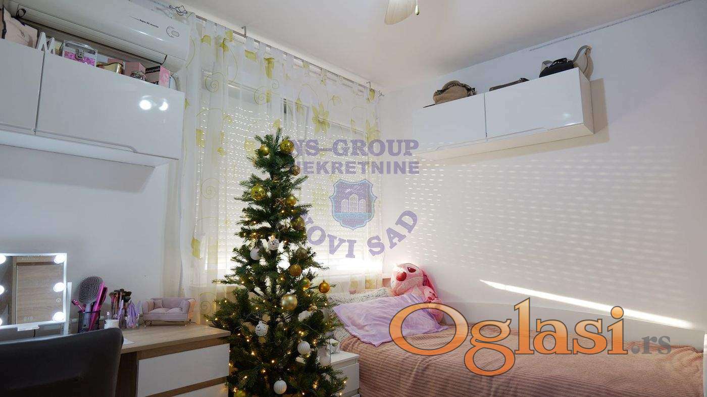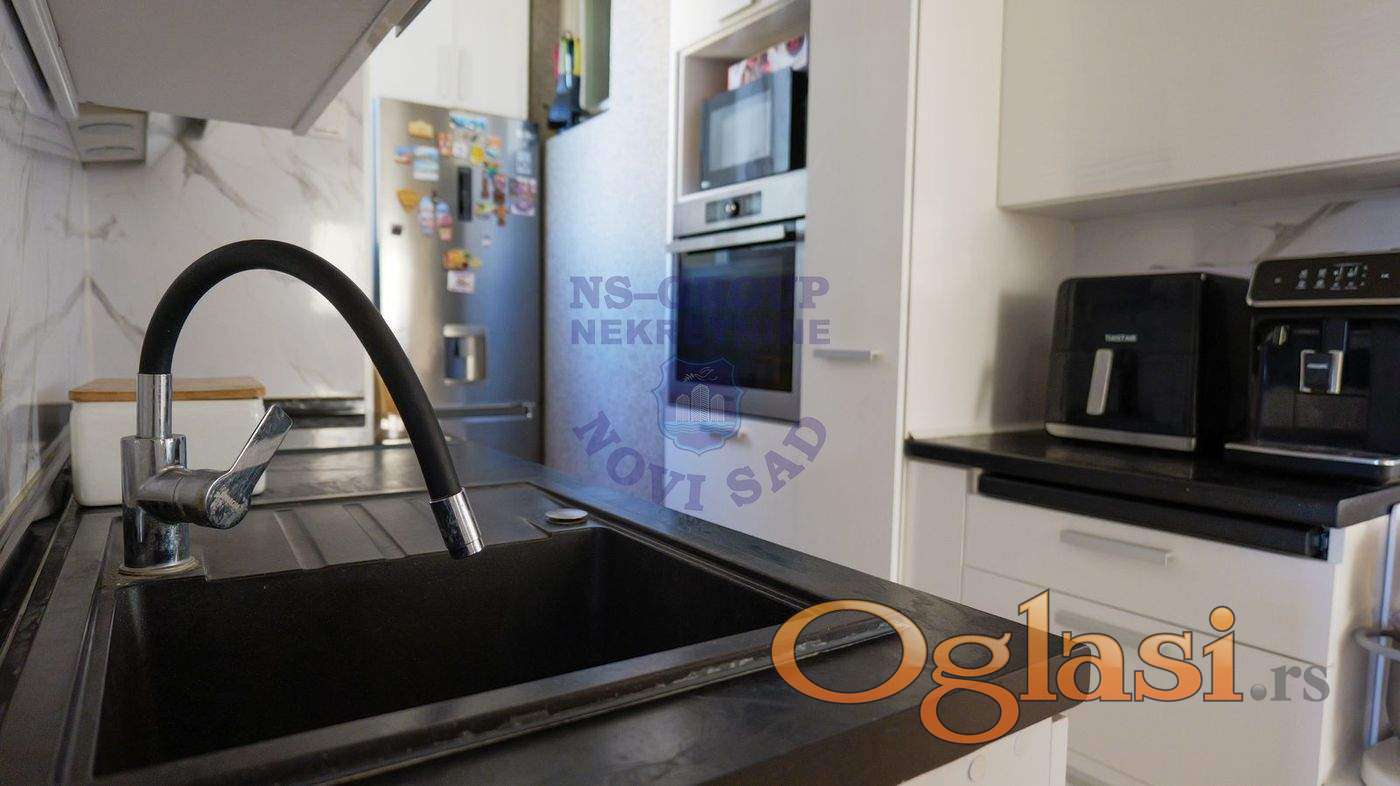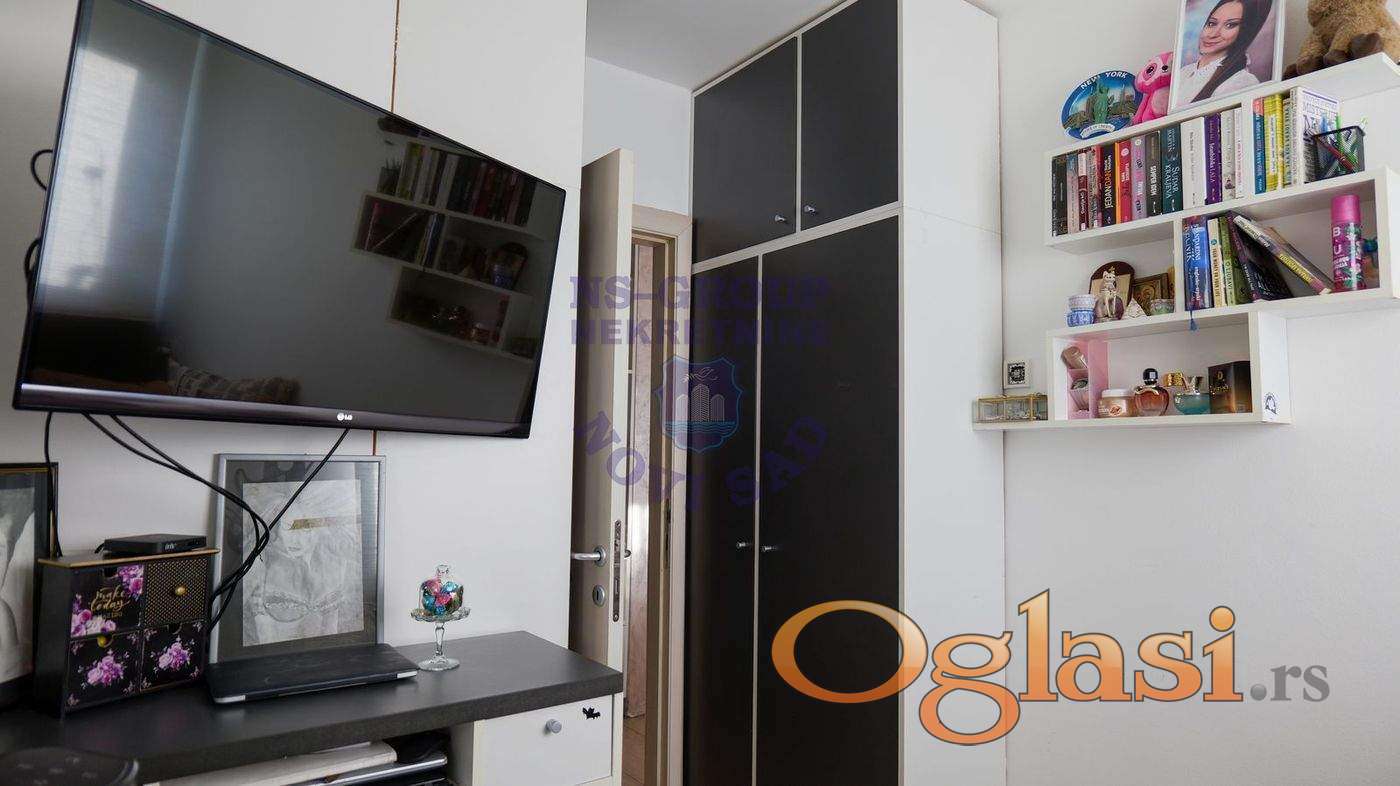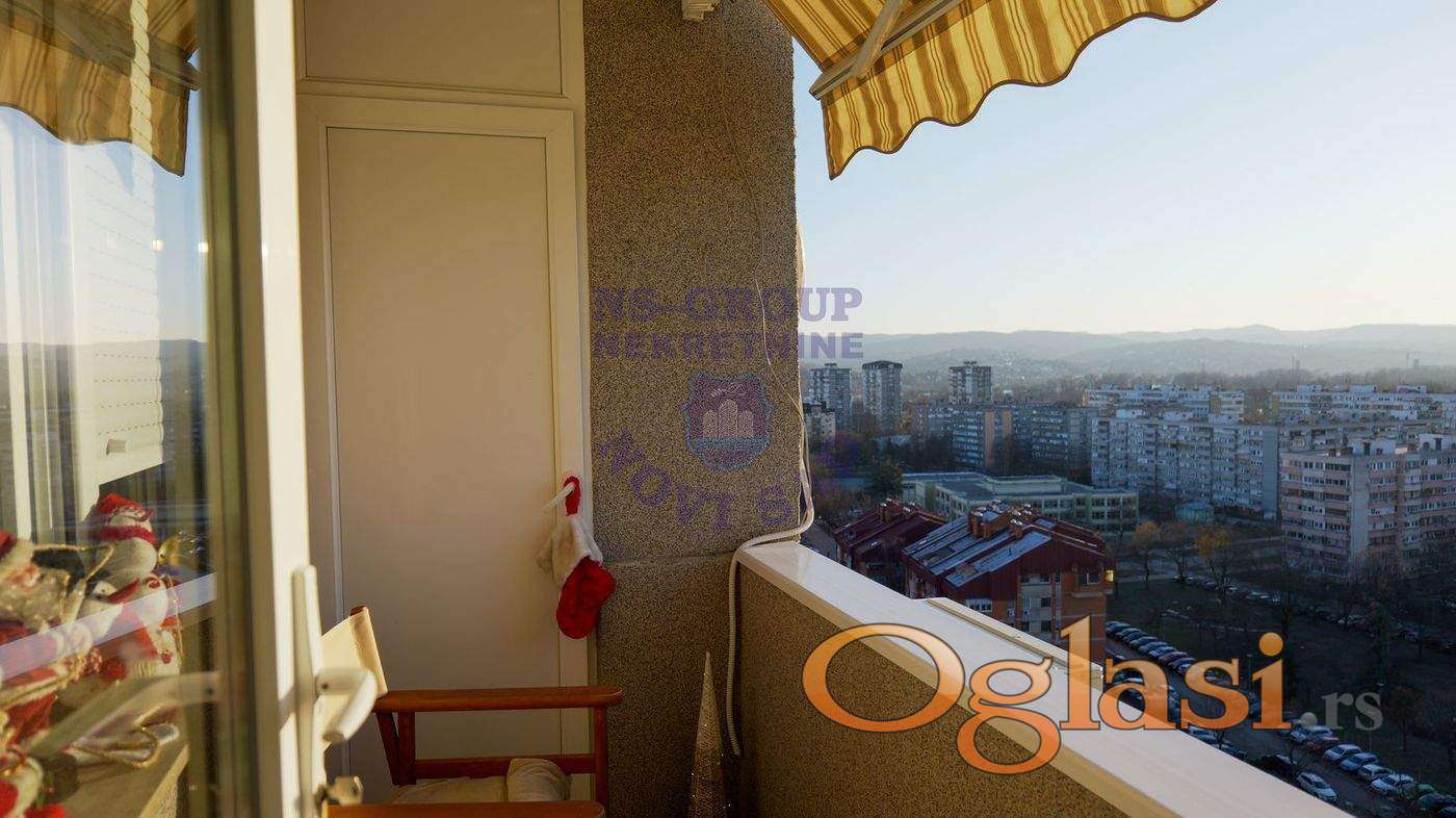 Na prodaju stan idealne lokacije, na doslovno jedan pešački prelaz udaljenosti od Promenade, univerziteta i Spensa. Stan se nalazi na 15. od 16 spratova, kompletno je renoviran i opremljen. Sastoji se od prostranog dnevnog boravka, trpezarije i uvučene kuhinje, Ima 3 spavaće sobe, a poseduje i kupatilo i wc. Stan ima i terasu s koje se pruža prelep pogled na Dunav, Frušku goru i centar grada.