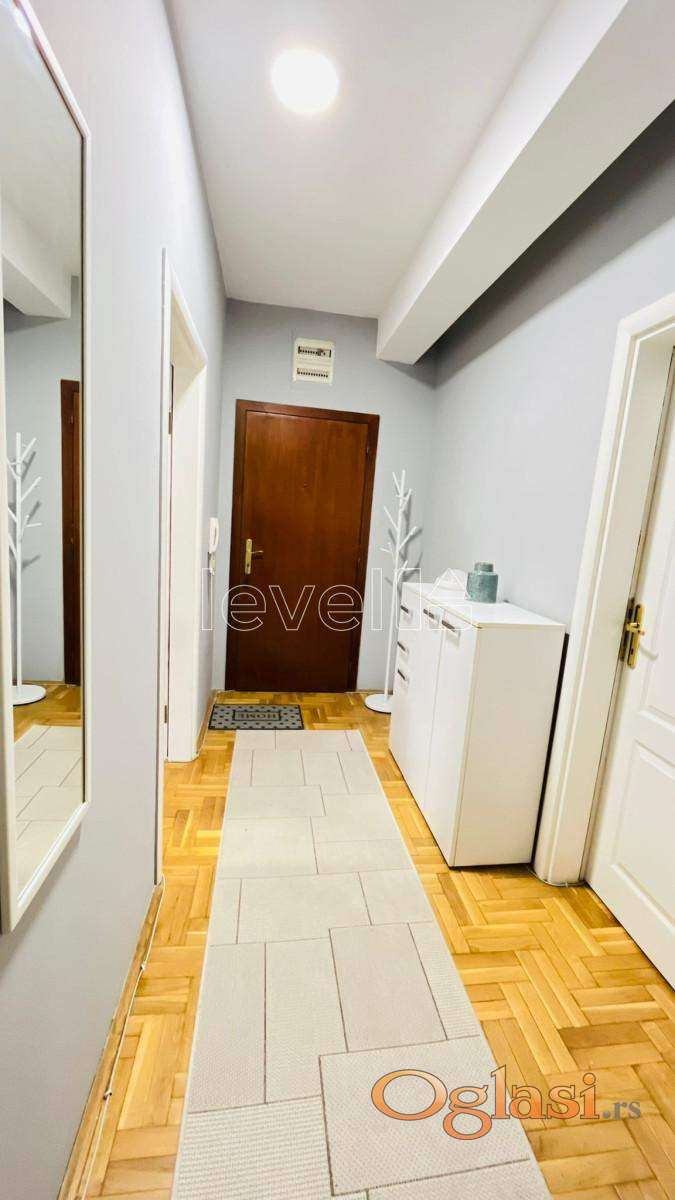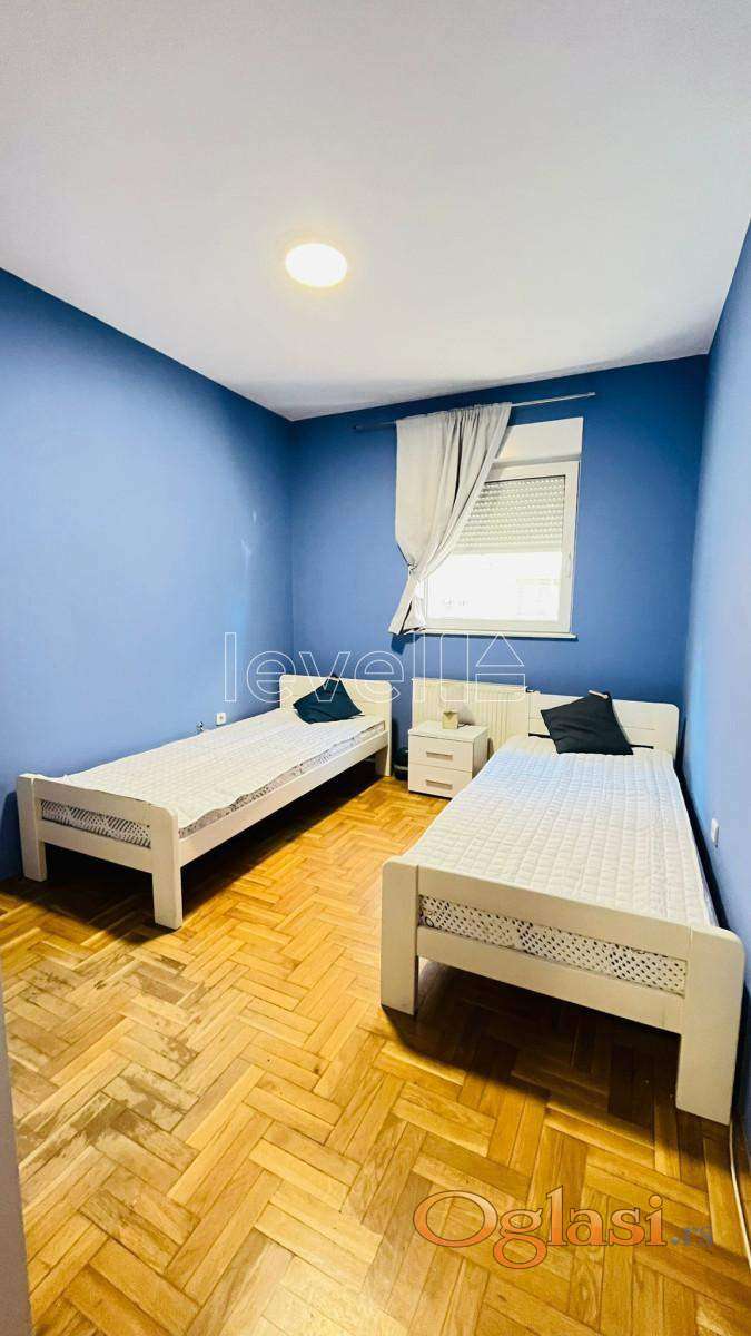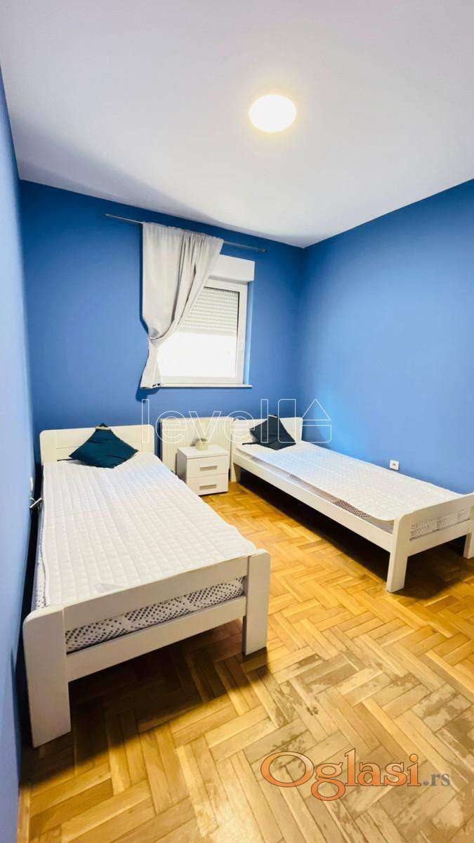 Struktura stana: ulazni hodnik, dnevni boravak sa kuhinjom i trpezarijom gde imate izlaz na veliku terasu, dve komforne spavaće sobe i kupatilo. Stan se prodaje kompletno namešten, kao na slikama.