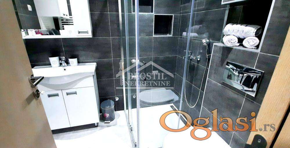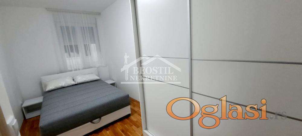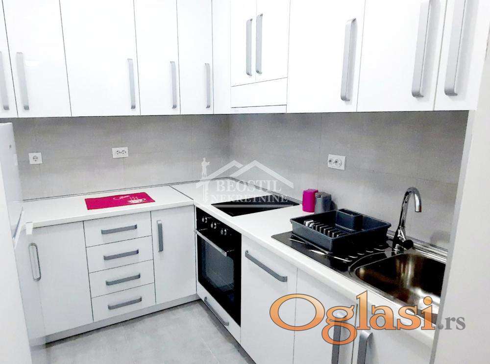 Moderno opremljen kvalitetnim nameštajem i ugradnom kuhinjom po meri, uključeno u cenu stana.