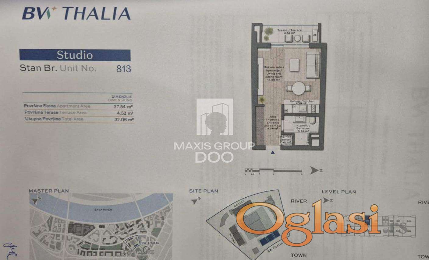 MAXIS GROUP – Agencija za nekretnine Broj u registru posrednika: 1850 🏡 PRODAJA – STUDIO APARTMAN | BEOGRAD NA VODI – BW THALIA 📐 Površina: 32,06 m²-CENA STANA 188.000 EVRA. CENA GARAŽE 29.000 evra. 🏢 Sprat: 8 / 15 🌞 Orijentacija: jugozapadna – stan je izuzetno svetao, osunčan tokom celog dana 🌿 Pogled: mirno unutrašnje dvorište 🏠 Opis nekretnine: Ekskluzivan studio apartman smešten na 8. spratu moderne zgrade BW Thalia, sa prelepim pogledom na uređeno unutrašnje dvorište. Stan odlikuje funkcionalan raspored (DNEVNA SOBA -površina 15,55m2, , VEŠERNICA-0.61m2, TERASA-4,52m2, KUPATALO-3,94m2, HODNIK) obilje prirodne svetlosti i prijatan ambijent idealan za savremeni gradski život ili kao investicija. Velike staklene površine, kvalitetna završna obrada i moderan dizajn pružaju visok nivo komfora u svakodnevnom korišćenju. 🌟 Karakteristike zgrade: Recepcija sa fizičko-tehničkim obezbeđenjem Savremena arhitektura Uređeno unutrašnje dvorište Dečije igralište Kafići i restorani u okviru kompleksa Podzemna garaža (mogućnost kupovine garažnog mesta 29.000 evra ) 🌳 Prednosti lokacije: Srce prestižnog kompleksa Beograd na vodi Sportski centar Apollo u neposrednoj blizini Blizina Savskog parka, Sava promenade i TC Galerija Odlična povezanost sa svim delovima grada Šetališta, biciklističke staze i rekreativni sadržaji u neposrednoj blizini 📍 Lokacija: BW Thalia, Beograd na vodi AGENCIJSKA PROVIZIJA 2% OD KUPOPRODAJNE CENE 060 0660429 Agent prodaje, BOJAN VRANIĆ-br.licence 5744 AGENCIJA ZA NEKRETNINE MAXIS GROUP DOO BEOGRAD, Hercegovačka 15/303, BW SIMFONIJA 2, treći sprat 303, telefon 011/7644890 Agencijska provizija 2%