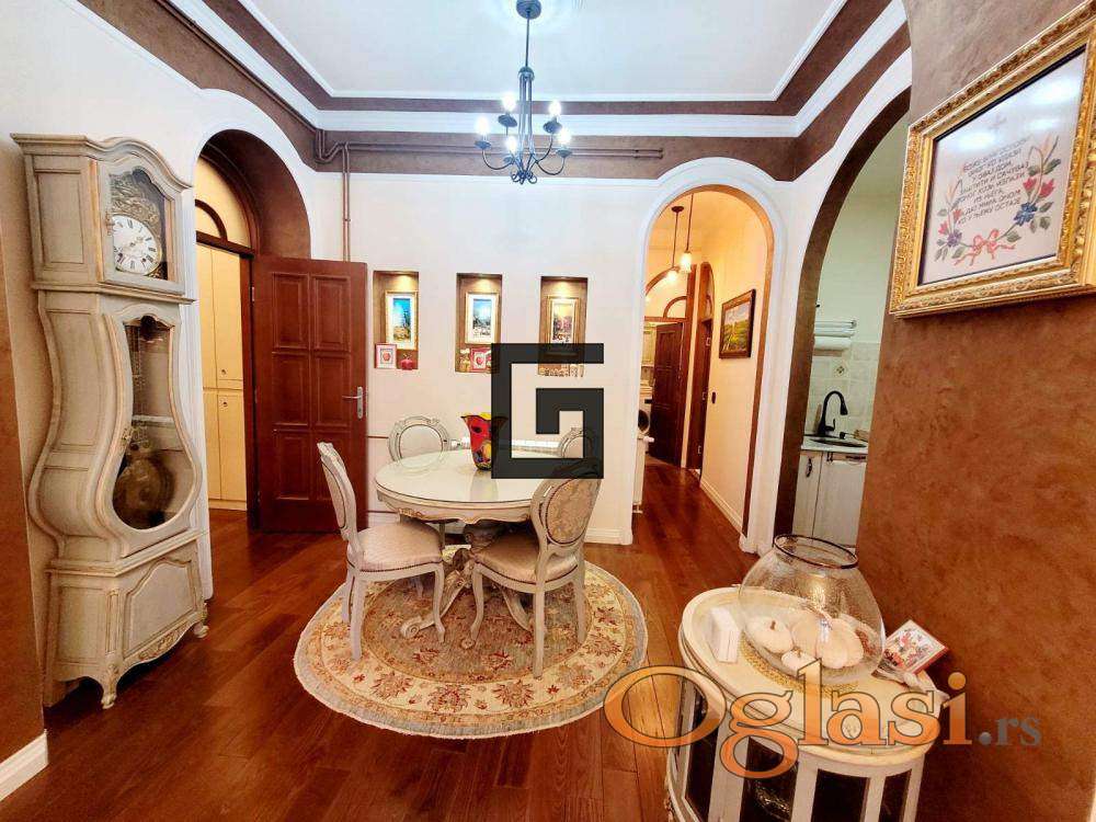 Nekretnina je temeljno obnovljena uz primenu najkvalitetnijih materijala i savremenih rešenja, sa posebnom pažnjom posvećenom očuvanju autentičnog salonskog šarma. Visoki plafoni dodatno naglašavaju osećaj elegancije, svetlosti i komfora.