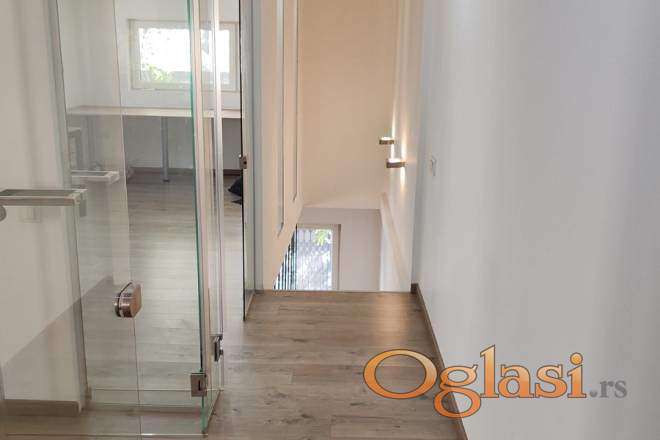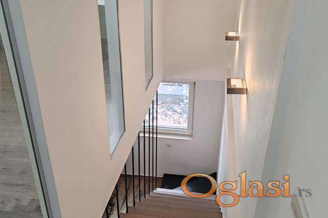 Sastoji se od ulaznog hodnika i kupatila u prizemlju, na prvom spratu je open-space koncept kuhinje i dnevnog boravka, dok su na sledećem nivou dve prostorije I kupatilo. U istoj vertikali u prizemlju nalazi se lokal od 23m2 pod zakupom, koji takođe može biti predmet prodaje uz stambenu jedinicu