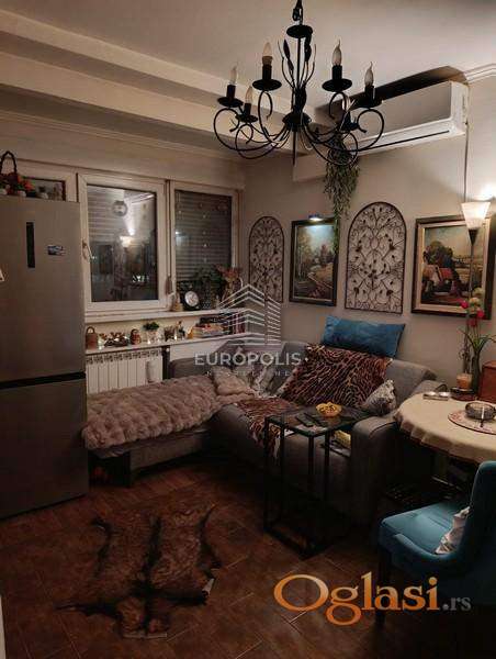 Uknjižen na 30m2, mereno 36m2 Izuzetno funkcionalnog rasporeda Izvorno 1.5 uspešno adaptiran u 2.5 Odlično pozicioniran jugo-zapadna orijentacija stana Lodja Stan poseduje podrum Prostorije: Hodnik Dnevni boravak sa trpezarijom Kuhinja Kupatilo 2 spavaće sobe Lođa Agencijska nadoknada iznosi 2% .
