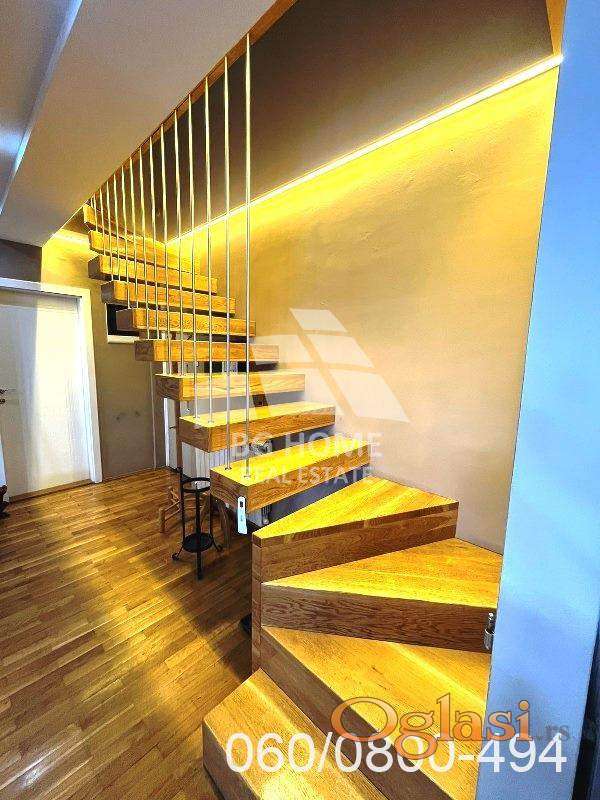 Donji nivo je koncipiran savremeno sa open space dnevnim boravkom od 60m2 sa izlazom na terasu od 21m2, balkon, gostinjski toalet i pomoćna soba.