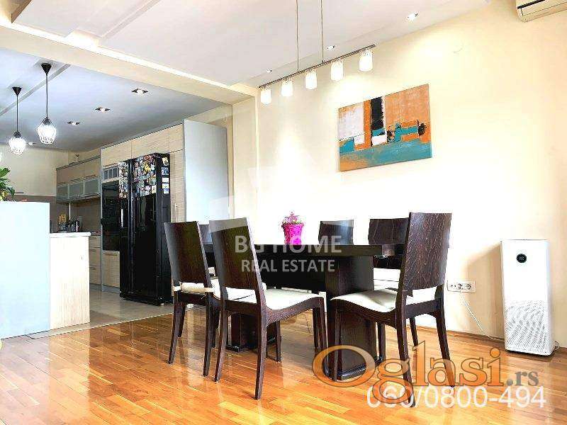 4.0, 157m2, zatvorena terasa 21m2, CG, lift, V/VI, klima, telefon, interfon, video nadzor, alarm, mogućnost kupovine 1-3 garažna mesta. Uknjižen 157m2.