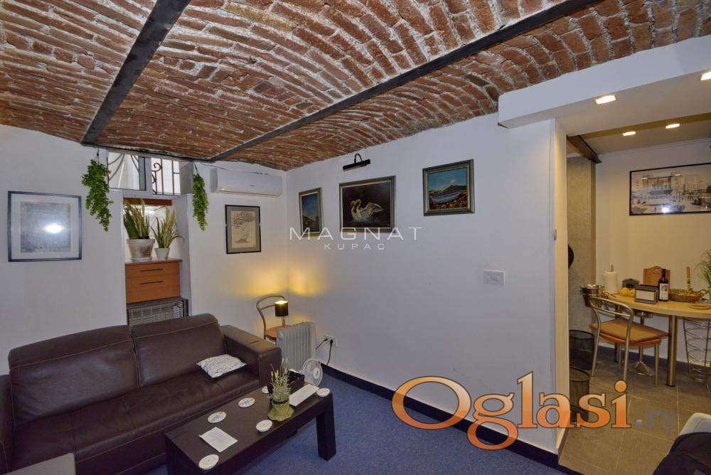 U strogom centru Beograda, u blizini Knez Mihailove ulice u Zmaj Jovinoj prodaje se stan u niskom prizemlju. Stan je jednoiposoban. Kompletno renoviran. Promenjene sve elektro i vodovodne instalacije. Uvedeno podno grejanje u kupatilu. Uradjena termo i zvučna izolacija. Ugradjen video nadzor u hodniku. Stan je okrenut ka dvorištu, zaklonjen od gradske buke. Prodaje se sa ugradnom kuhinjom i tehnikom i svim ugradnim elementima. Od prostorija ima predsoblje, kuhinju, dnevni boravk, spavaću sobu, kupatilo i posebni dela odvojen kao ostava. Stan je uknjižen. Oznaka na mapi pokazuje deo grada, ne i tačan položaj zgrade. Posrednička naknada 2%
