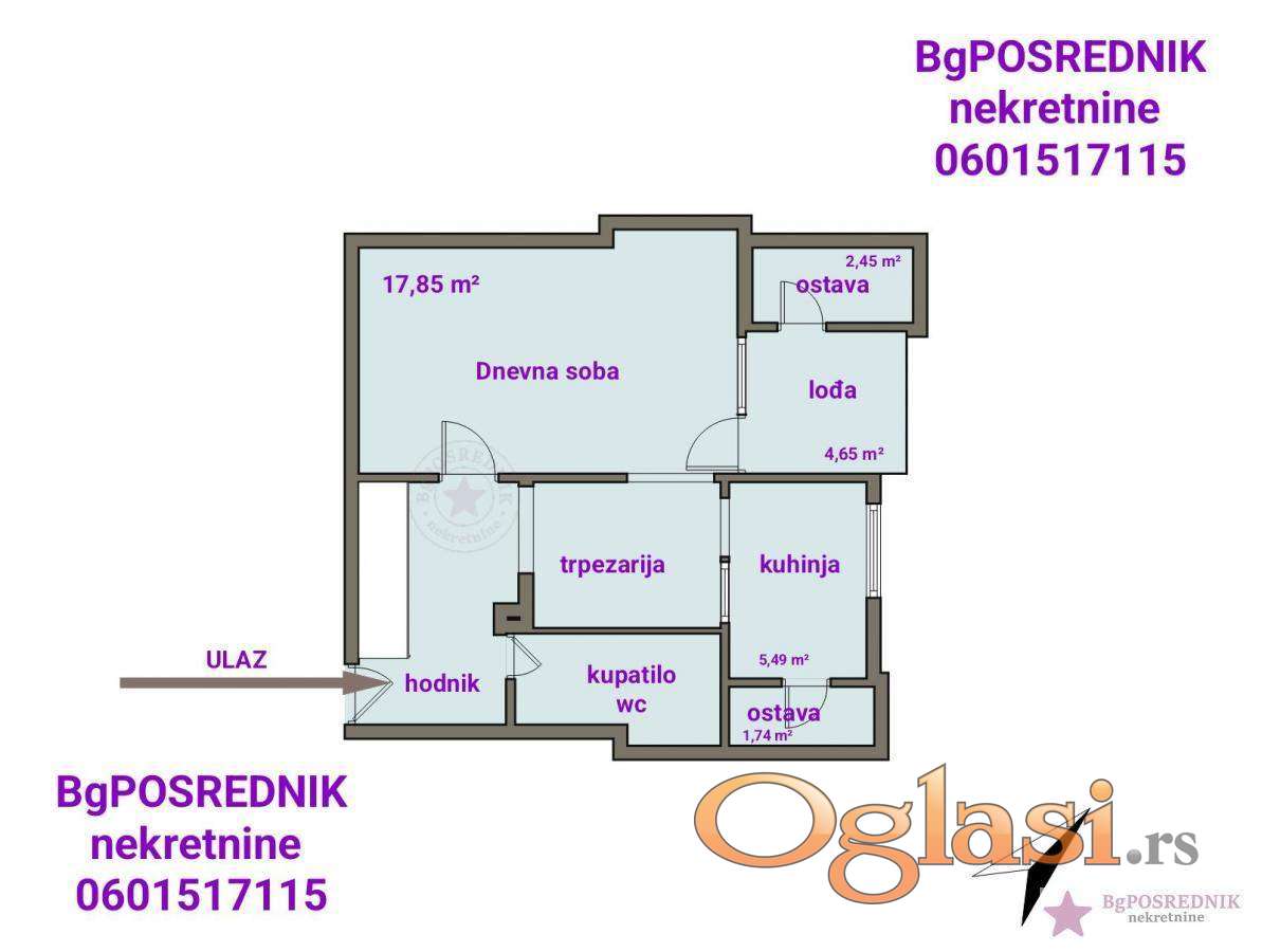 Prostorije: ulazni hodnik, wc/kupatilo, trpezarija, kuhinja, dnevna soba, lođa, ostava.