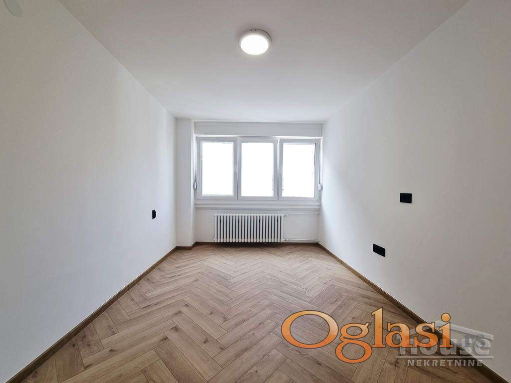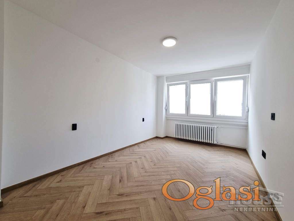 CENA 210.000e + 3% agencijska provizija. Prodaje se POTPUNO RENOVIRAN trosoban stan u neposrednoj blizini O.Š."Ivo Lola Ribar". Stan se sastoji iz ogromnog dnevnog boravka sa trpezarijom, izdvojene kuhinje sa prirodnom ventilacijom, jedne velike spavaće sobe, jedne manje spavaće sobe, kupatila, toaleta i prostrane terase. Ceo stan je dvorišno orijentisan, nalazi se na šestom spratu starije kvalitetne zgrade sa liftom. UKNJIŽEN 1/1 i može se prometovati putem stambenog kredita. Kontakt 0638901299 Nataša Kekenj