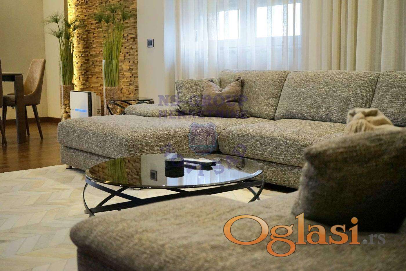 JEDINSTVENA nekretnina u ponudi, na odličnoj lokaciji. Nešto posebno samo kod nas, stan koji ukoliko tražite dom pruža upravo to. Bez ulaganja, sve radjeno po meri i sa pažljivo biranim detaljima. Poseduje dnevni boravak sa trpezarijom, kuhinju, dve spavaće sobe sa svojim kupatilom, plus jos jedno dodatno kupatilo, terasu. Nešto što dodatno krasi i izdvaja ovaj biser od ostalih, jeste i to da su vlasnici mislili na svaki segment uživanja i opuštanja. U svako kupatilo je ugradjen audio stereo sistem, podno grejanje, tri klime. Prodaje se kompletno namešten, sa dva garažna mesta. Očekujemo vaš poziv, da se uverite i oduševite kao i mi sa ovim nesvakidašnjom ponudom.