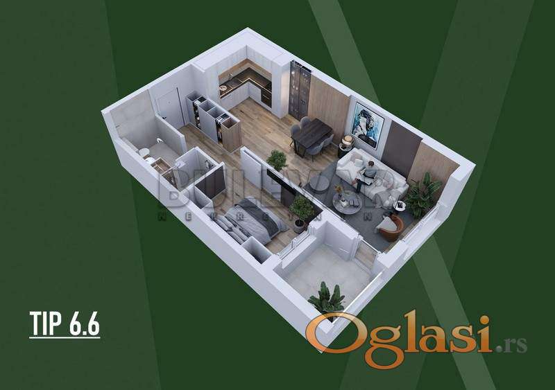 U ponudi je dvosoban stan u savremenom stambeno-poslovnom kompleksu koji čine tri lamele modernog arhitektonskog izraza: Lamela A – kula od 15 spratova sa 182 stana Lamela B – objekat od 10 spratova sa 72 stana Lamela C – objekat od 10 spratova sa 72 stana Kompleks je projektovan tako da budućim vlasnicima pruži moderan način života kroz spoj luksuza, funkcionalnosti i komfora, uz visok kvalitet gradnje i savremeni dizajn. Ukupno je planirano 326 stanova u 14 tipova sa različitim kvadraturama i varijantama. TIP 6.6– Lamela A Idealan izbor za prvi dom, život u paru ili kao izuzetno isplativa investicija za izdavanje. Stan je projektovan po open-space konceptu, sa maksimalno iskorišćenim kvadratima i funkcionalnim rasporedom koji pruža osećaj većeg prostora. Struktura: ulazni hodnik dnevni boravak sa kuhinjom i trpezarijom spavaća soba kupatilo terasa Kvadrature i dostupnost: Lamela A – neto 54,70m² U ponudi 13 stanova od III do XV sprata. Cena: III sprat – 2.151.66 €/m² XV sprat – 2.460,38€/m² Kvalitet gradnje: armirano-betonska konstrukcija fasadni zidovi od kvalitetnog bloka (20 cm) termo i zvučna izolacija – kamena vuna 12 cm PVC stolarija sa šestokomornim profilima i niskoemisionim staklom sigurnosna ulazna vrata lift parket i keramika prve klase sanitarije renomiranih svetskih proizvođača grejanje sa individualnim merenjem potrošnje split klimatizacija Moguća je kupovina parking mesta u podzemnoj garaži po ceni od 13.000 € do 18.300 € + PDV. Garaža se prostire na tri nivoa i omogućava komforno parkiranje, uz ostave povezane sa parking mestima. U okviru kompleksa planirani su kafići, prodavnice i poslovni prostori, čime se formira zaokružena urbana celina sa svim sadržajima potrebnim za kvalitetan svakodnevni život. Objekat je u izgradnji, a završetak radova planiran je tokom 2028. godine. Pogodnosti plaćanja: 10% popusta za jednokratnu (keš) uplatu 3%–5% popusta za kupce putem stambenog kredita mogućnost otplate u jednakim mesečnim ratama do završetka izgradnje + dodatnih 12 meseci Ovo je samo deo naše ponude — za više informacija stojimo Vam na raspolaganju.