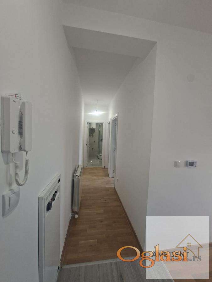 Stan je opremljen sigurnosnim ulaznim vratima i PVC šestokomornim prozorima, što obezbeđuje dobru termo i zvučnu izolaciju.