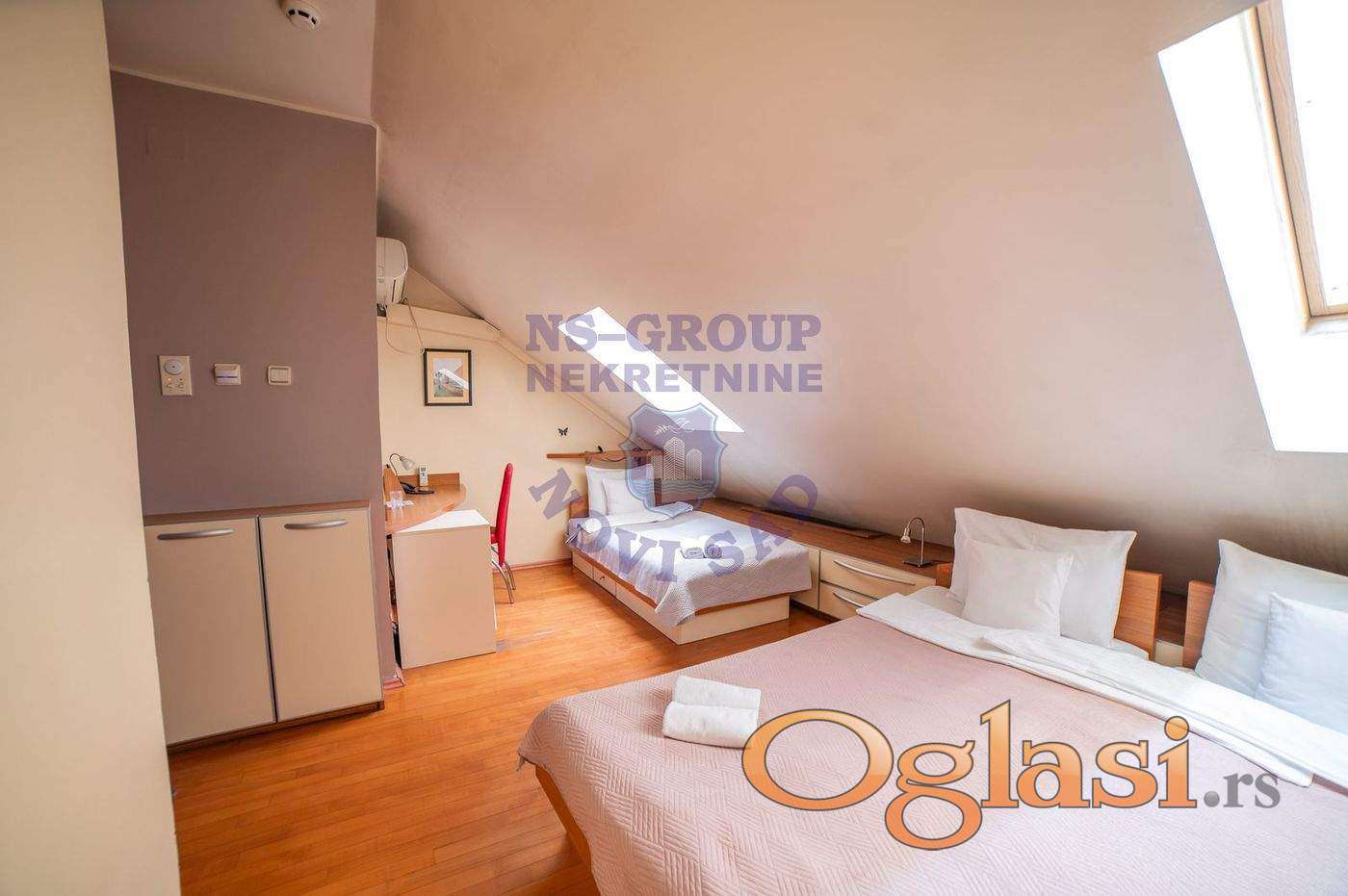 Na prodaju retka nekretnina na izuzetnoj lokaciji u Novom Sadu – ulica Cara Dušana. Radi se o spoju dve stambene jedinice, ukupne uknjižene površine 332 m², trenutno organizovanih kao funkcionalan hostel sa 13 opremljenih soba, recepcijom i kancelarijom. Objekat uspešno posluje skoro 20 godina, sa važećom kategorizacijom soba od 3 i 4 zvezdice, i prodaje se sa kompletnim inventarom, spreman za nastavak biznisa bez dodatnih ulaganja. Dodatnu vrednost čini tavanski prostor površine oko 150 m², dostupan i funkcionalan, sa potencijalom za adaptaciju ili proširenje kapaciteta. Objekat ima dva ulaza, poseduje lift, i nalazi se u neposrednoj blizini marketa, restorana, banaka i javnog prevoza. Idealno za nastavak izdavanja (hostel, apartmani), ali i kao prostor za firme, IT kompanije, coworking ili edukativne centre. Moguća kupovina i parking mesta uz doplatu. Za više informacija i zakazivanje gledanja, pozovite naše agente prodaje. Ne propustite priliku!