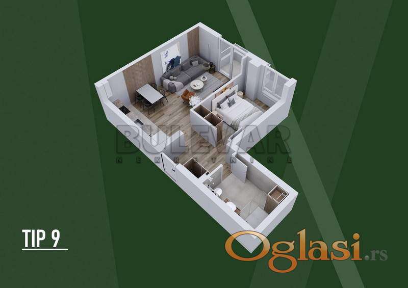TIP 8 – Lamela A Idealan izbor za prvi dom, život u paru ili kao izuzetno isplativa investicija za izdavanje. Stan je projektovan po open-space konceptu, sa maksimalno iskorišćenim kvadratima i funkcionalnim rasporedom koji pruža osećaj većeg prostora.