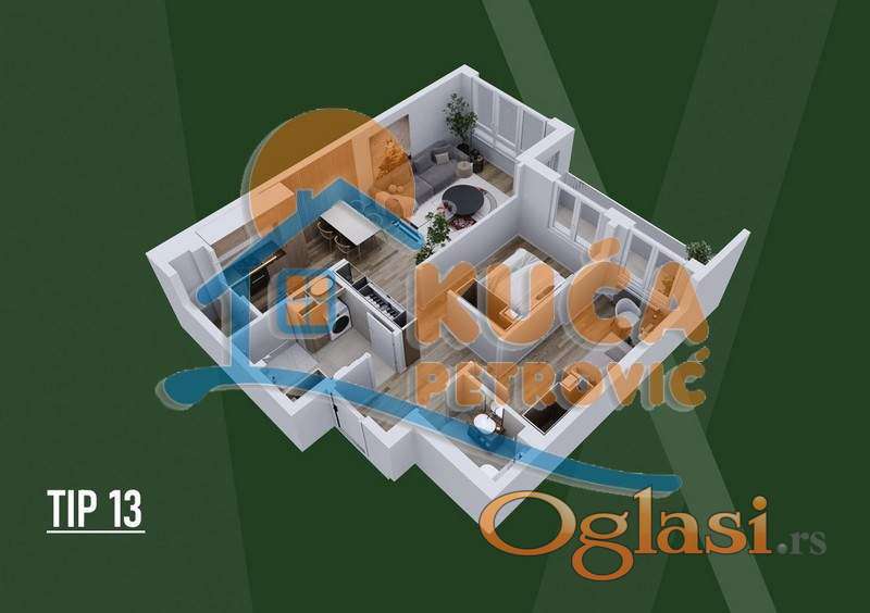 TIP 13 – Lamela B Idealan izbor za prvi dom, život u paru ili kao izuzetno isplativa investicija za izdavanje. Stan je projektovan po open-space konceptu, sa maksimalno iskorišćenim kvadratima i funkcionalnim rasporedom koji pruža osećaj većeg prostora.