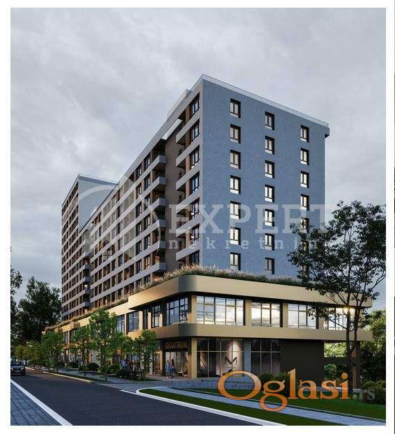 U ponudi je dvosoban stan u savremenom stambeno-poslovnom kompleksu koji čine tri lamele modernog arhitektonskog izraza: Lamela A – kula od 15 spratova sa 182 stana Lamela B – objekat od 10 spratova sa 72 stana Lamela C – objekat od 10 spratova sa 72 stana Kompleks je projektovan tako da budućim vlasnicima pruži moderan način života kroz spoj luksuza, funkcionalnosti i komfora, uz visok kvalitet gradnje i savremeni dizajn. Ukupno je planirano 326 stanova u 14 tipova sa različitim kvadraturama i varijantama.