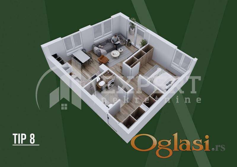 TIP 8 – Lamela A Idealan izbor za prvi dom, život u paru ili kao izuzetno isplativa investicija za izdavanje. Stan je projektovan po open-space konceptu, sa maksimalno iskorišćenim kvadratima i funkcionalnim rasporedom koji pruža osećaj većeg prostora.