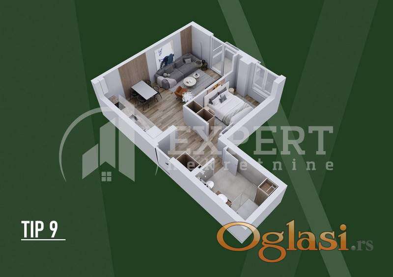 TIP 8 – Lamela A Idealan izbor za prvi dom, život u paru ili kao izuzetno isplativa investicija za izdavanje. Stan je projektovan po open-space konceptu, sa maksimalno iskorišćenim kvadratima i funkcionalnim rasporedom koji pruža osećaj većeg prostora.