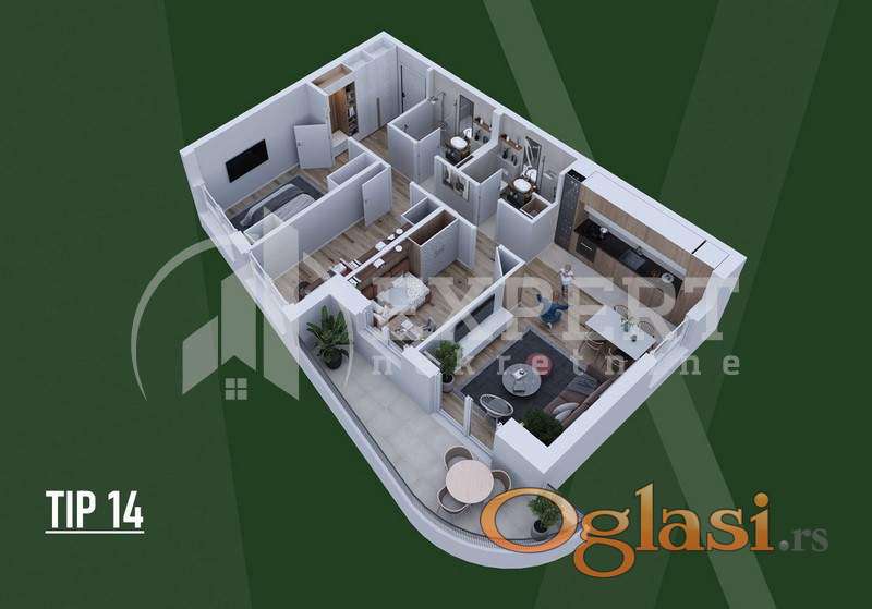 TIP 14 – Lamela A Idealan izbor za prvi dom, život u paru ili kao izuzetno isplativa investicija za izdavanje. Stan je projektovan po open-space konceptu, sa maksimalno iskorišćenim kvadratima i funkcionalnim rasporedom koji pruža osećaj većeg prostora.