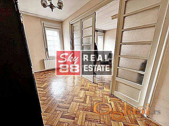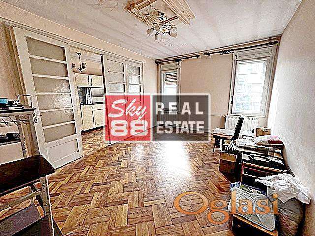 2,5 Centar , Stari grad , neposredna blizina Knez Mihailove , Studentskog Trga , 77m2 , 4 / 4 , bez lifta ( ima uslova za ugradnju lifta ) , cg / KP , salonski stan u izvornom stanju na vrhunskoj lokaciji , lako adaptibilan , za renoviranje , dva ulaza - deljiv , dvostrano orijentisan , svetao , visina plafona 2,8m , autenticna , uredna i lepo odrzavana predratna zgrada , gradnja 1936. godine , uknjizen.