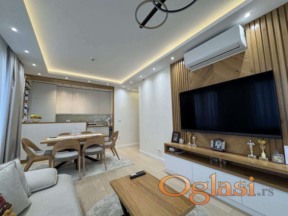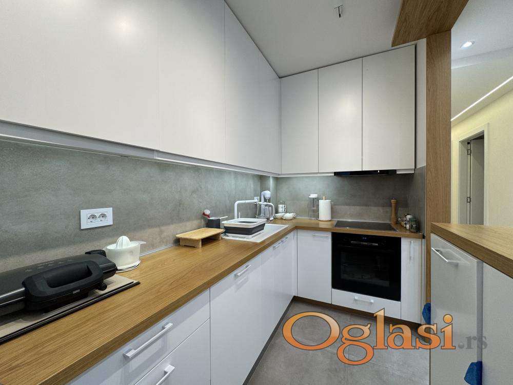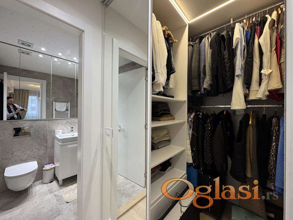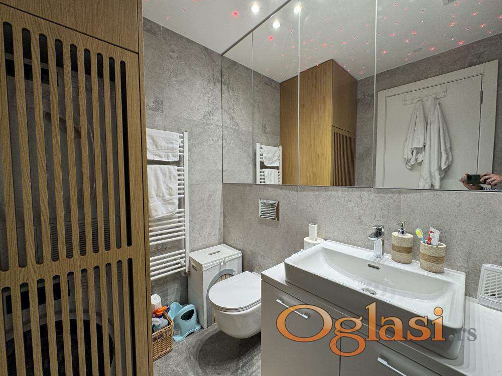 U okviru prestižnog kompleksa Lastavica – prva faza, prodaje se četvorosoban poslovni apartman površine 83 m², smešten na 2. spratu moderno koncipirane stambeno-poslovne zgrade. Stan je dvostrano orijentisan i ima izuzetno funkcionalan raspored, koji obuhvata prostran dnevni boravak sa trpezarijskim delom, kuhinju, tri spavaće sobe (uključujući master spavaću sobu sa sopstvenim kupatilom), još jedno kupatilo i terasu. Enterijer je uređen u savremenom, visokokvalitetnom standardu, sa pažljivo biranim materijalima, kvalitetnom stolarijom, kao i kompletnom tehnikom i nameštajem. Nekretnina se prodaje potpuno opremljena i spremna za korišćenje, bez dodatnih ulaganja. Grejanje je centralno, po utrošku, dok je topla sanitarna voda obezbeđena centralno, bez potrebe za bojlerom, što dodatno doprinosi komforu i funkcionalnosti prostora. Kompleks Lastavica predstavlja jednu od najkvalitetnijih novijih lokacija u ovom delu grada, sa odličnom povezanošću ka Novom Beogradu i centru, kao i neposrednom blizinom svih sadržaja neophodnih za svakodnevni život ili poslovno korišćenje. Nekretnina se vodi kao poslovni apartman. Istaknuta cena od 310.000 € + PDV odnosi se na kupovinu od strane pravnog lica, uz mogućnost povrata PDV-a. Cena za kupovinu od strane fizičkog lica iznosi 370.000 €. Ova nekretnina predstavlja odličan izbor za privatno korišćenje, uz visok nivo komfora i kvaliteta koji kompleks Lastavica pruža. Agencijska provizija iznosi 2% od kupoprodajne cene. Branislav Matić +381 64 24 20 492