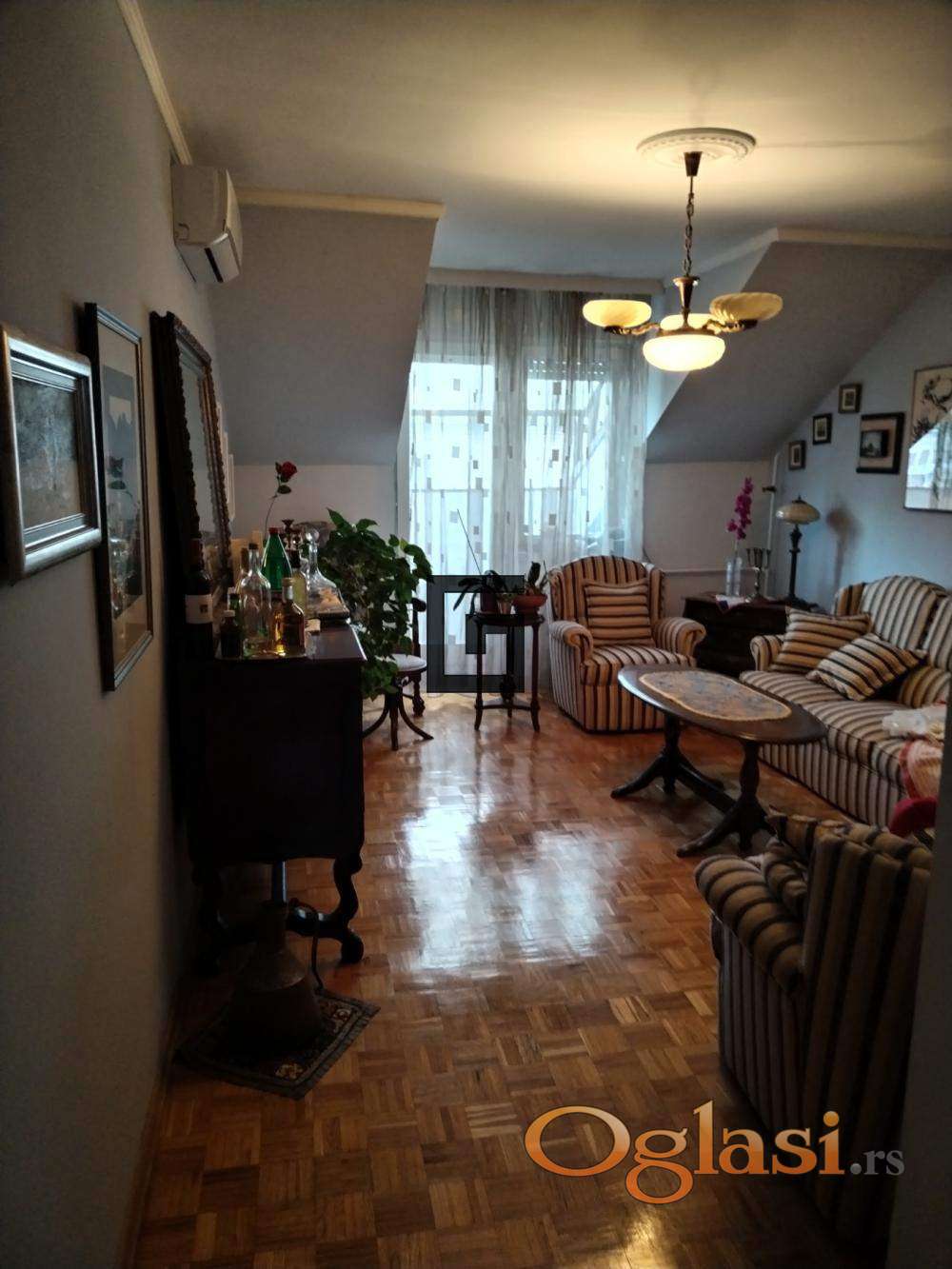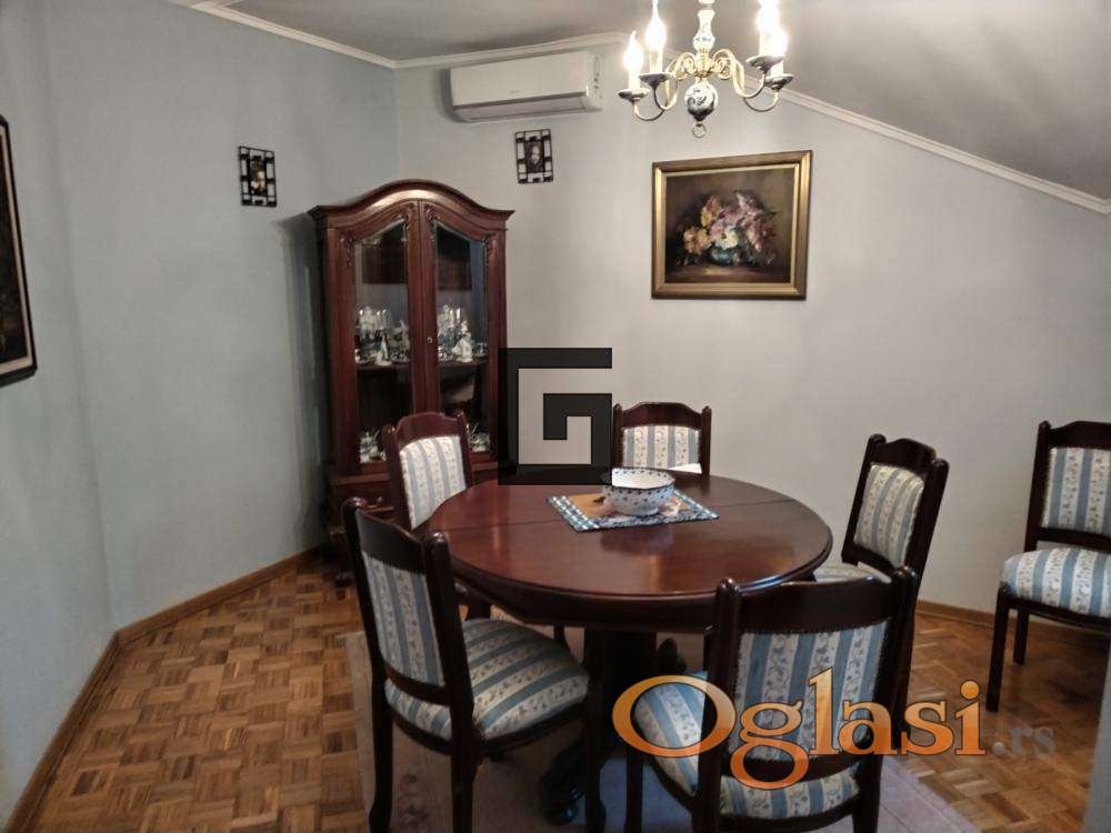 Prostorije : Ulazni hodnik, dnevni boravak, kuhinja, trpezarija, spavaća soba, kupatilo, špajz, tri lođe.