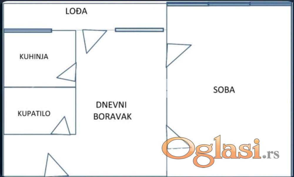 Od prostorija ima hodnik sa mestom za plakar, kuhinju, trpezariju, dnevni boravak, kupatilo i zastakljenu lođu od 6m2. Visina od lođe do betona je 2.40 metara.