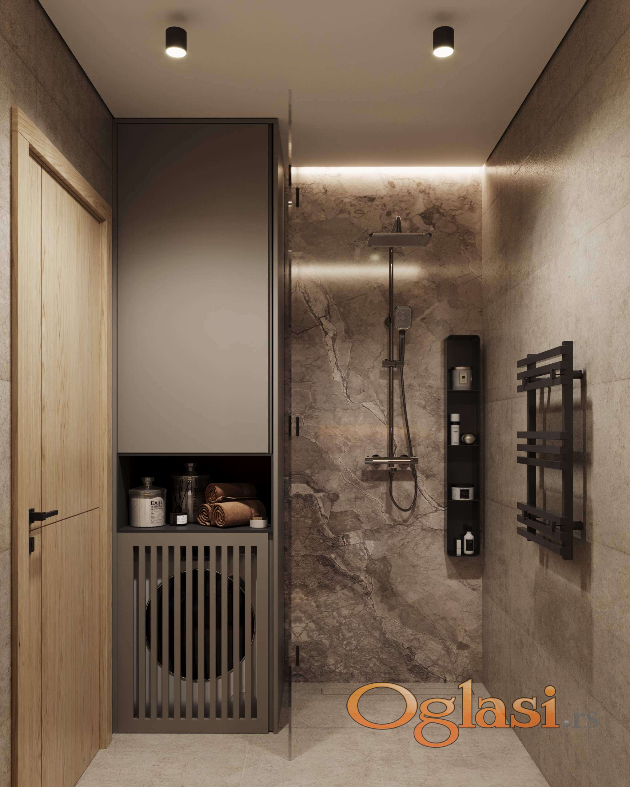 Svi stanovi biće opremljeni savremenim plafonskim sistemom grejanja i hlađenja sa ugrađenim automatskim odvlaživačima vazduha, tehnologijom koja se primenjuje u luksuznim privatnim objektima i vilama. Ovaj sistem ravnomerno zagreva i hladi sve površine u stanu, bez strujanja vazduha, promaje i buke karakteristične za klasične klima-uređaje, bez podizanja prašine i neprijatnih temperaturnih razlika. Automatski odvlaživač stvara zdravu mikroklimu i održava optimalnu vlažnost vazduha između 40 i 60 procenata, pri čemu sistem samostalno prati i reguliše uslove u prostoru prema zadatim parametrima. Na ovaj način smanjuju se alergijske reakcije, izbegava suvoća vazduha u zimskom periodu i umanjuju respiratorni problemi. U kupatilima je predviđeno podno grejanje. Kompletan sistem grejanja i hlađenja funkcioniše putem toplotnih pumpi na struju, što obezbeđuje visoku energetsku efikasnost i znatno niže troškove grejanja i hlađenja.