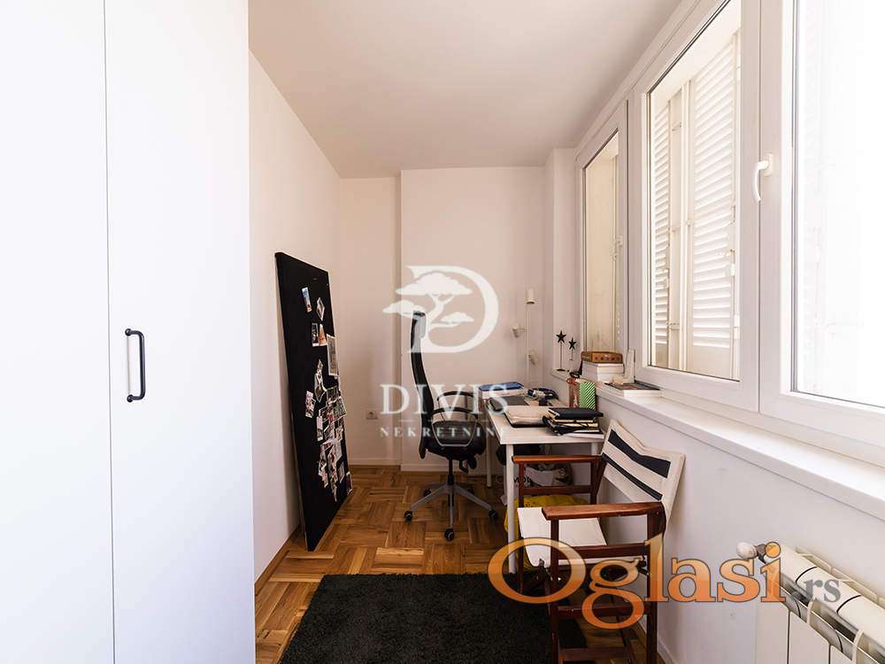 Prodajemo renoviran stan u Mileševskoj ulici, u neposrednoj blizini Crvenog krsta. Nalazi se na petom spratu zgrade sa malim brojem stanova, urednog i redovno održavanog ulaza.