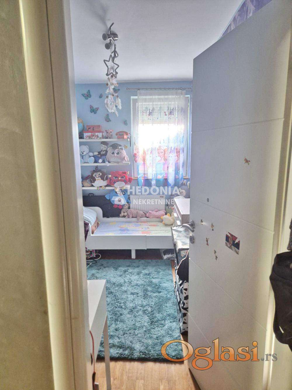 U mirnom delu Medaković naselja, u porodičnoj zoni, u ulici Pavla Popovića, nalazi se ovaj dvoiposoban stan. Smešten je u zgradi novije gradnje (kod okretnice trolejbusa 29 i autobusa 18), uredne i održavane, na drugom spratu. Infrastruktura je kompletna, u blizini su škola, vrtić, marketi kao i svi ostali neophodni sadržaji za udobno stanovanje. Saobraćajne veze sa ostalim delovima grada su odlične. Stan se sastoji iz ulaznog hodnika, dnevnog boravka za izlazom na terasu sa divnim pogledom, kuhinje sa trpezarijom u okviru dnevnog boravka, dve spavaće sobe i kupatila. U stanu ostaju ugradna kuhinja sa svim elementima bele tehnike i ugradni plakari u hodniku. Ulaganja nisu potrebna sem higijenskog krečenja.