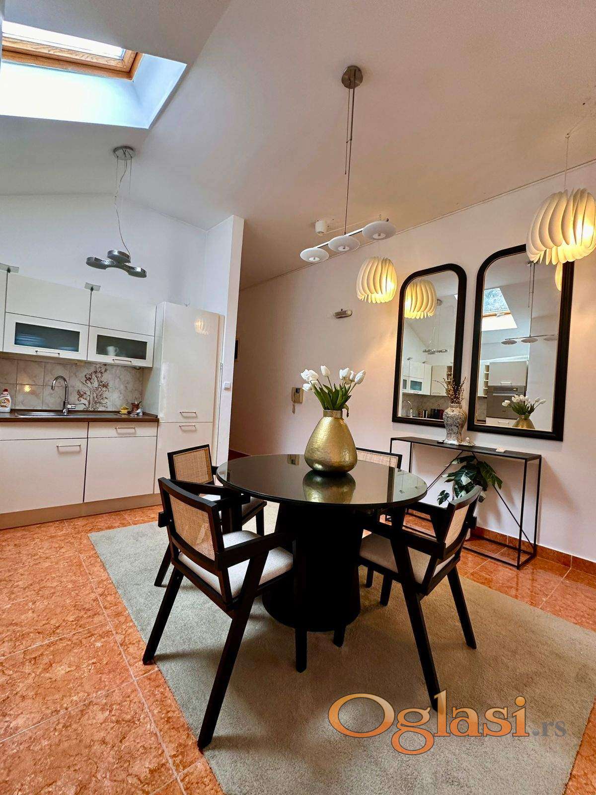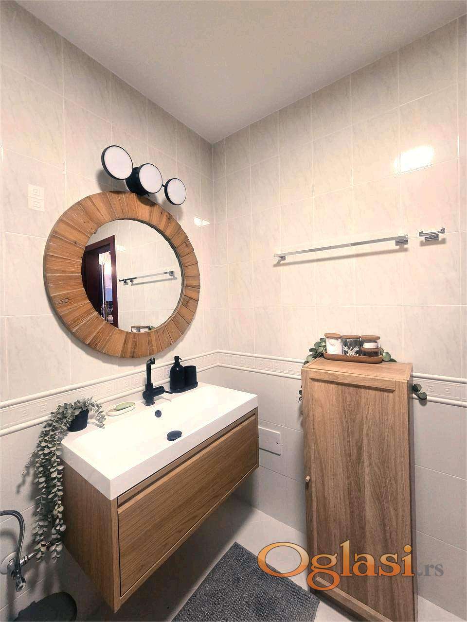 Stan se prodaje potpuno namješten, sa svim novim namještajem. Kuhinja je potpuno opremljena, uključujući perilicu posuđa, posuđe i pribor za jelo. Klima uređaj.