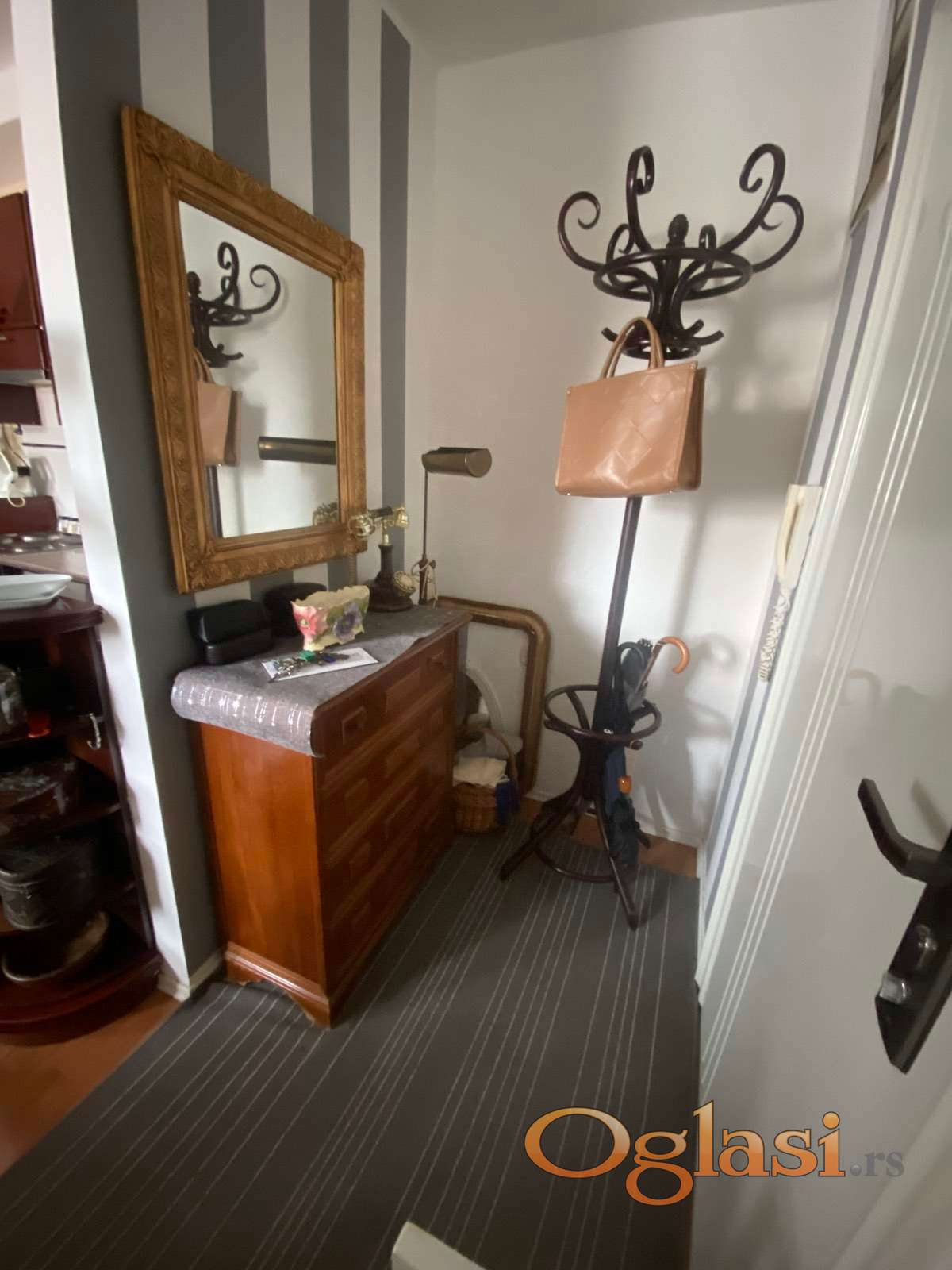 - Stan se sastoji od dva nivoa, prvi nivo obuhvata hodnik sa predsobljem iz kog se ulazi u dnevnu sobu u sklopu koje je kuhinja. Kupatilo sa kadom je odvojeno od toaleta.