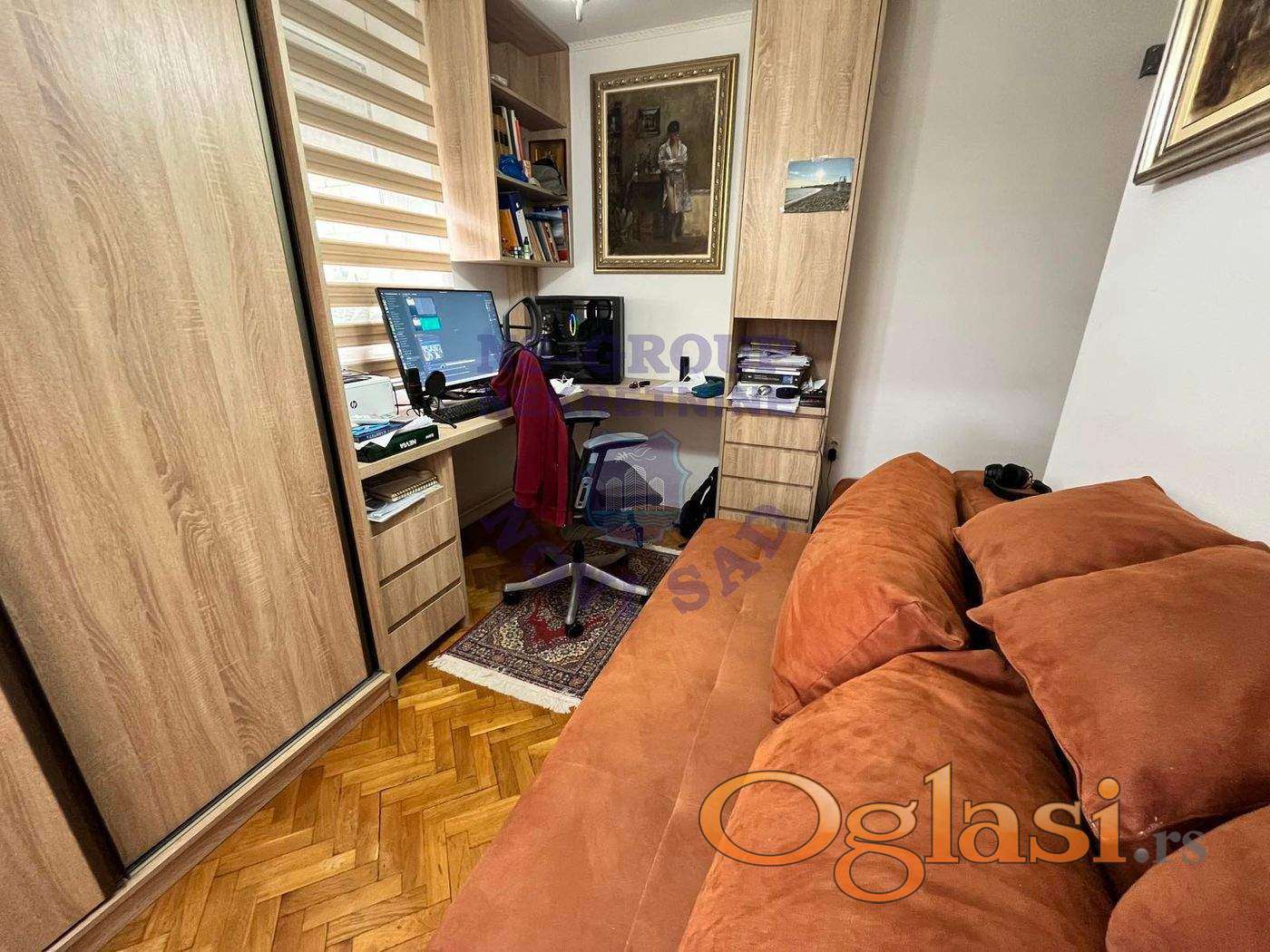 Jednoetažni stan površine 104m2, sastoji se od hodnika iz kog se ulazi u sve prostorije, tri spavaće sobe, dnevnog boravka, tri terase koje su zastakljene visokokvalitetnim materijalima. Stan je trostrano orijentisan i veoma prostran za višečlanu porodicu. Nalazi se u blizini svega čega je potrebno za skladan porodičan život. Za više informacija, pozovite naše agente prodaje!