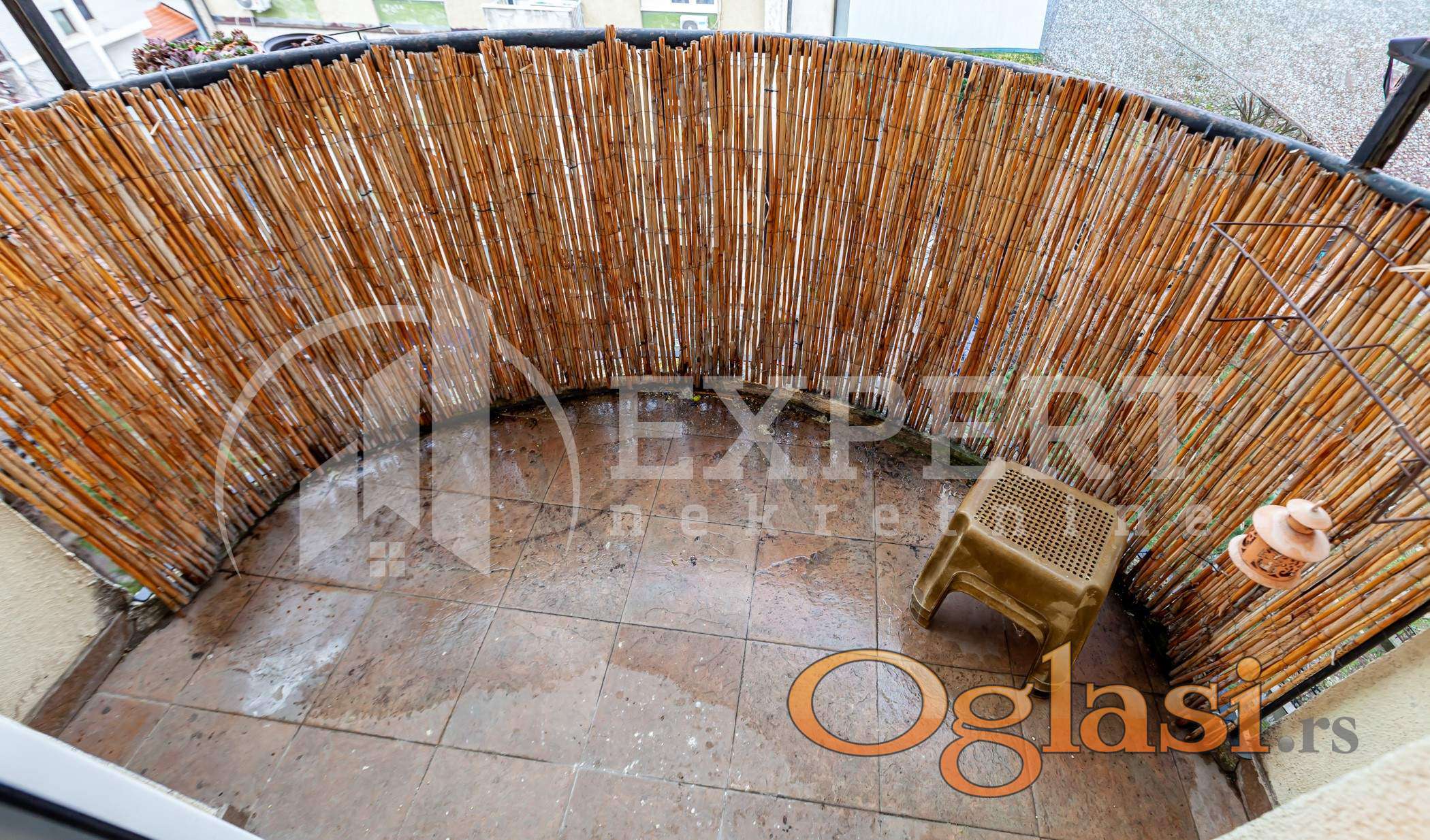 Stan se nalazi na petom spratu u zgradi kvalitetne gradnje, bez lifta. Iznad stana je ploča sa izolacijom, međuprostor i krov. Pvc stolarija, keramika u kuhinji i kupatilu, bez ulaganja u stan.Prodaje se sa delom stvari. Etažno grejanje u stanu (kotao na struju), klima uređaj.