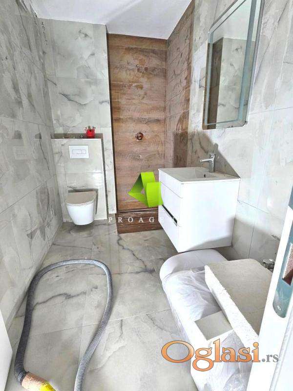 U ponudi je stambeno-poslovni kompleks koji se gradi na odličnoj lokaciji na Paliluli. Moderan dizajn čini ga veoma atraktivnim. Prodaje se dvoiposoban stan površine 56m2, koji se nalazi na I spratu. Sastoji se od ulaznog hodnika, dnevnog boravka sa kuhinjom, dve spavaće sobe, kupatila i terase. U gradnji se koriste najsavremeniji i najkvalitetniji materijali: fasada od alu bondova, izolacija od stiropora debljine 15cm, ALU višekomorni i profili sa dvoslojnim niskoemisionim staklom i vrhunskim okovom, aluminijumske roletne, enterijerska drvena vrata, obložena medijapanom, završno obrađena melaninskom folijom, sigurnosna ulazna vrata, višeslojni parket prirodne teksture, keramičke pločice renomiranih brendova, protivklizna keramika i staklene ograde na terasama,centralno je grejanje i mogućnost za ugradnju toplotne pumpe sa fenkojlerima(razvedena instalacija za jednu spoljašnju i dve unutrašnje jedinice). Stanovi će biti opremljeni osnovnim smart sistemom uz mogućnost brze implementacije na napredni smart sistem po želji kupca. Centralno je grejanje i mogućnost za ugradnju toplotne pumpe sa fenkojlerima(razvedena instalacija za jednu spoljašnju i dve unutrašnje jedinice)U cenu je uključen PDV i kupci prvog stana imaju pravo na povraćaj PDV-a u iznosu od 10%. Postoji mogućnost kupovine parking mesta 12000e+PDV. Nalazi se u mirnoj ulici, sa raznovrsnim sadržajem u okolini, ugostiteljskim objektom u samom kompleksu, u blizini vrtića, škole, fakulteta, odlično povezan sa ostalim delovima grada, što ga čini idealnim za porodičan život. Hvala Vam što ste pogledali oglas. Za više informacija o ovoj ili drugim nekretninama i zakazivanje razgledanja kontaktirajte agenta na broj telefona iz oglasa (poziv, sms, viber) ili putem e-maila. Kompletnu ponudu dostupnih nekretnina možete pronaći na našem sajtu. Agencija Proagent nekretnine je upisana u Registru posrednika pod brojem: 940.