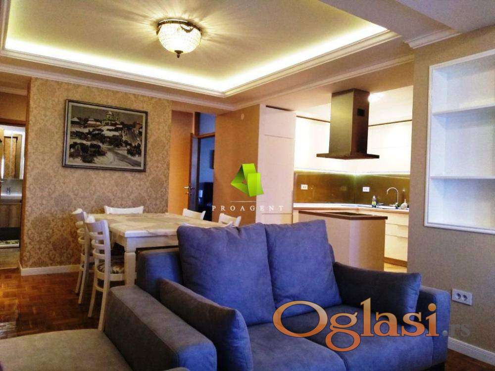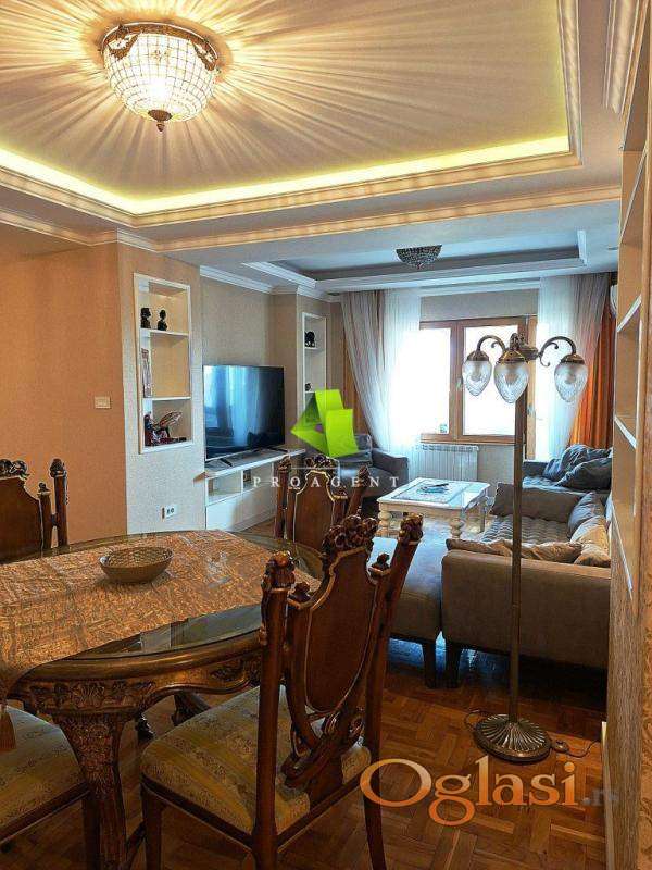 U ponudi je troiposoban stan u strogom centru grada, u mirnoj ulici u blizini pešačke zone. Površine je 90m2, nalazi se na VI spratu zgrade koja ima lift. Stan poseduje dobar i funkcionalan raspored i sastoji se od ulaznog hodnika, dnevnog boravka, tri spavaće sobe od kojih svaka ima terasu, kuhinje, trpezarije, kupatila, saune. Veoma je lepo osvetljen, pruža izuzetnu komfornost. Svaki detalj uređen je sa stilom zbog čega stan odiše lepotom i luksuzom. Stan se prodaje sa svim stvarima, što predstavlja jednu od prednosti jer se odmah može koristiti. Nalazi se na atraktivnoj lokaciji, u blizini svih važnih institucija i predstavlja pravo mesto za sve one koji vole urbani stil života i žele da budu u centru svih graddskih dešavanja. Hvala Vam što ste pogledali oglas. Za više informacija o ovoj ili drugim nekretninama i zakazivanje razgledanja kontaktirajte agenta na broj telefona iz oglasa (poziv, sms, viber) ili putem e-maila. Kompletnu ponudu dostupnih nekretnina možete pronaći na našem sajtu. Agencija Proagent nekretnine je upisana u Registru posrednika pod brojem: 940.