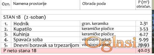 U ponudi je moderan stambeni objekat prilagođen savremenom načinu života porodice u Duvaništu. Prodaje se dvosoban stan, površine40,03m2, na III spratu stambene zgrade sa Belkom bešumni liftom. Sastoji se iz ulaznog hodnika, dnevnog boravka sa trpezarijom, odvojene kuhinje, spavaće sobe, kupatila. U gradnji se koriste najkvalitetniji materijali: Zidanje termo energetskim “Strong” blokom koji ima odlučnu zvučnu i toplotnu izolaciju, kao i odličnu mikroklimu, aluminijumska stolarija punjena argonom, 4S stakla, inverter klime grejanje+hlađenje sa spoljnim grejačem, instalacija po podu za etažno grejanje ili norveški radijatori (podno grejanje uz doplatu), sigurnosna-protivpožarna vrata, sobna vrata sa zvučnom izolacijom (magnetne brave), tarket-parket I klase višeslojni, granitna italijanska keramika Premium klase, protivklizna na terasama, sanitarije i tuš sistemi vrhunskog kvaliteta (walk-in tuš, kaljeno staklo, Rosan ventili), geberit sistem (ugradne wc šolje). Zgrada poseduje video nadzor, smart sistem (kao doplata), uz stan se dobija i ostava. Postoji mogućnost kupovine parking mesta. Nalazi se u mirnijem delu naselja Duvanište i predstavlja pravo mesto za Vaš kvalitetan i komforan porodičan život. U cenu je uključen PDV i kupci prvog stana imaju pravo na povraćaj PDV-a u iznosu od 10%. Hvala Vam što ste pogledali oglas. Za više informacija o ovoj ili drugim nekretninama i zakazivanje razgledanja kontaktirajte agenta na broj telefona iz oglasa (poziv, sms, viber) ili putem e-maila. Kompletnu ponudu dostupnih nekretnina možete pronaći na našem sajtu. Agencija Proagent nekretnine je upisana u Registru posrednika pod brojem: 940.