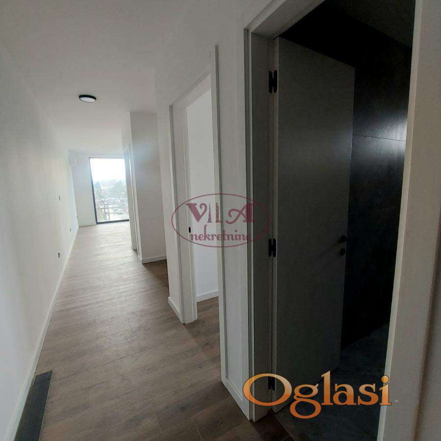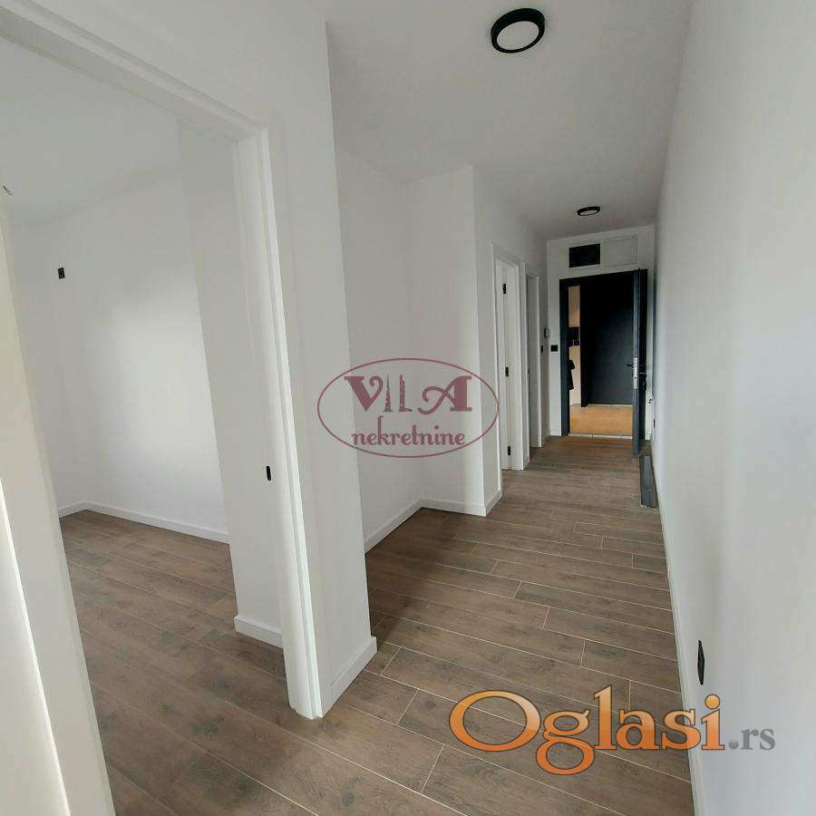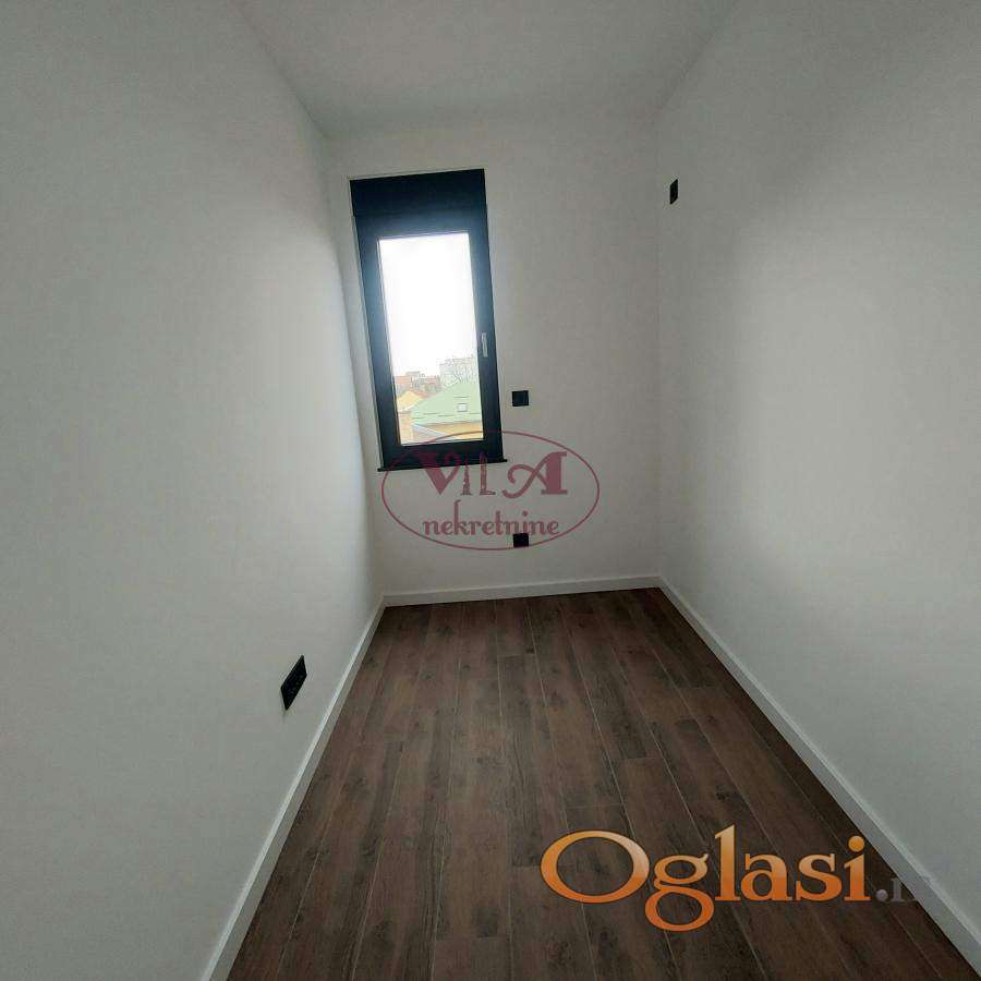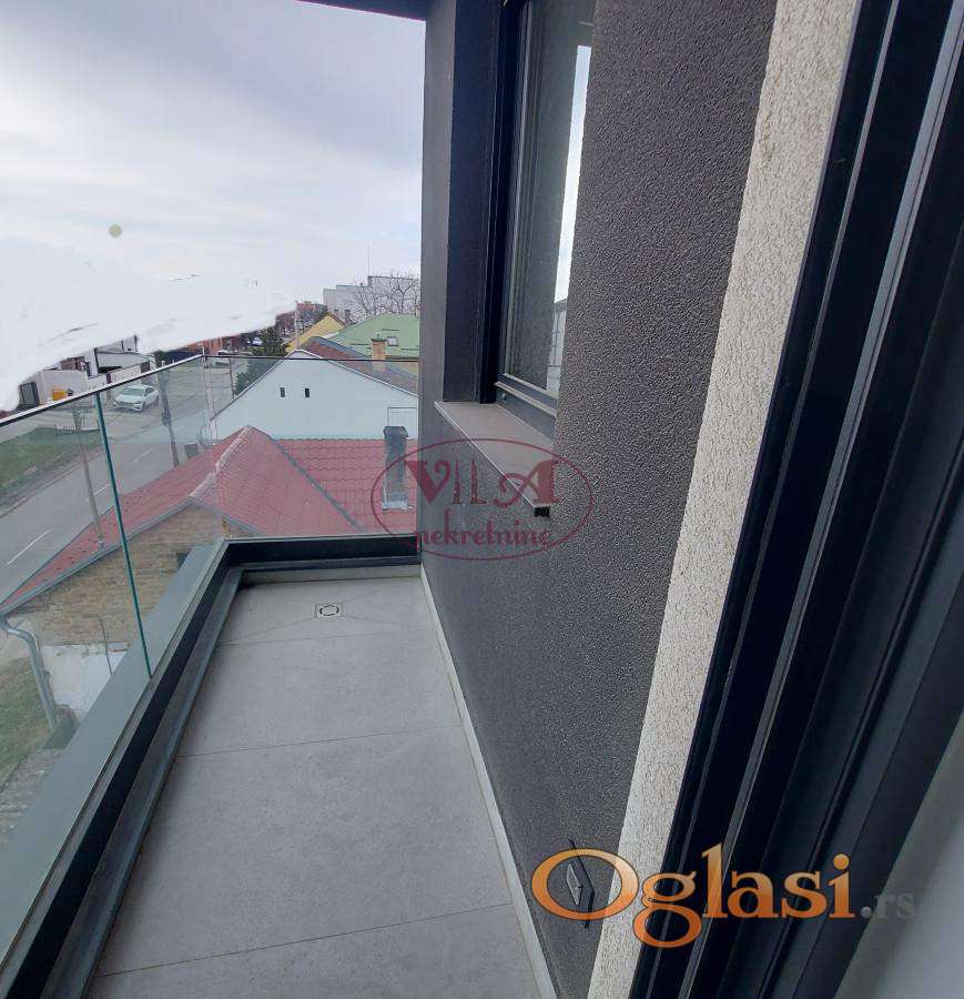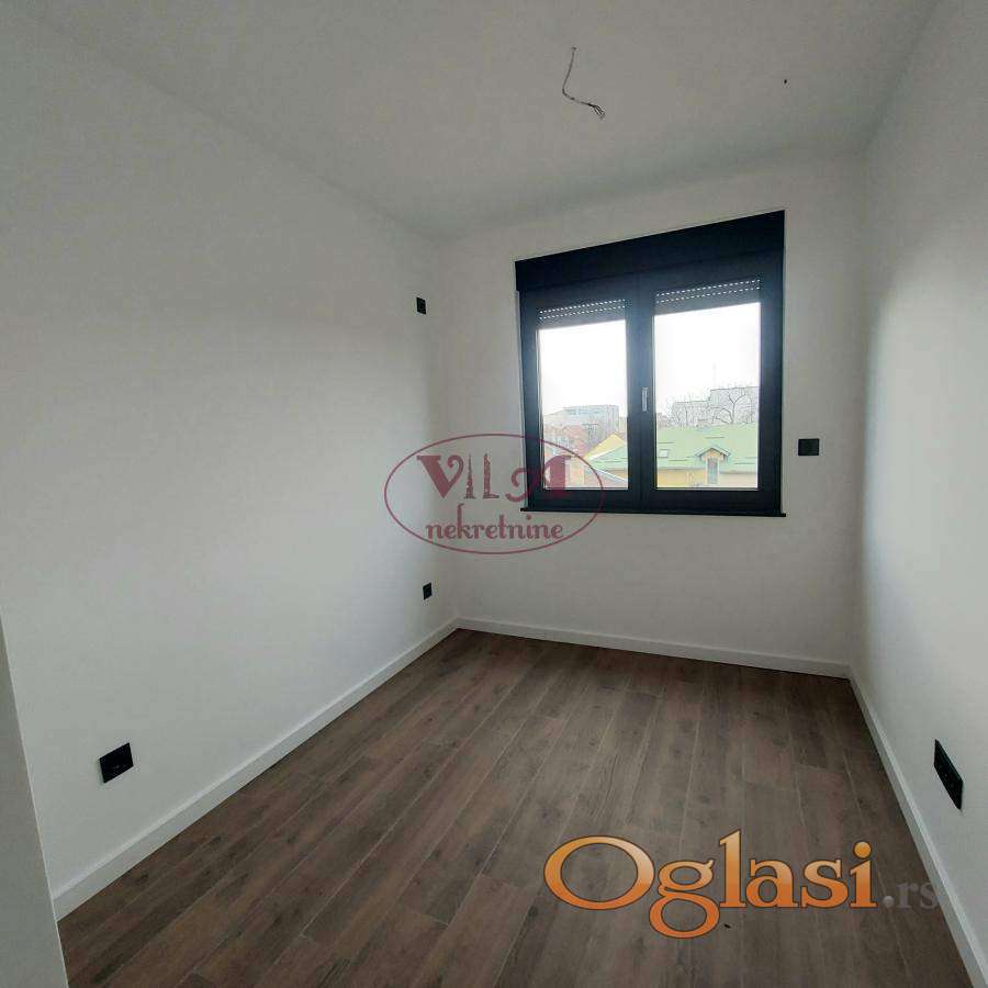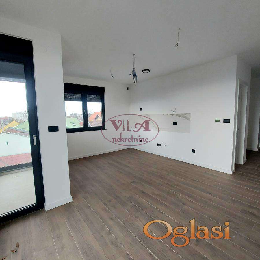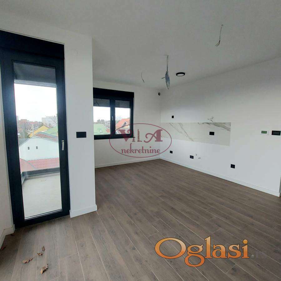 Prodaje se lux novi dvoiposoban stan u novosagrađenoj urbanoj vili, u lepom delu Telepa. Stan ima lep raspored, jednu veću i drugu manju spavaću sobu, kupatilo i prelepu dnevnu sobu koja je povezana sa kuhinjom i iz koje se izlazi na terasu. Dnevna soba ima veliki stakleni portal, koji daje posebnu čar stanovanju. U stanu je ugrađeno sve vrhunskog kvaliteta. Ugrađena je crna aluminijumska stolarija, troslojno staklo, završno staklo '' klima solar 4 godišnja doba'', ugrađena je italijanska keramika koja je gerovana, bez fugni, urađeno je podno grejanje na gas i klima. Uz stan se gratis dobija i krovna terasa, koju koristi kupac samo ovog stana. Uz stan se prodaje i parking mesto po ceni od 8500e. Stan je odličan, uknjižen, pa se može kupiti i putem stambenog kredita. Pored ovog stana se prodaje još jedan stan, isti ovakav, pa prijatelji ili rođaci mogu kupiti, ako žele da žive blizu jedni drugih. Odlična nekretnina, vredi pogledati. Tel. 065/424 55 77. Više fotografija na našem sajtu.