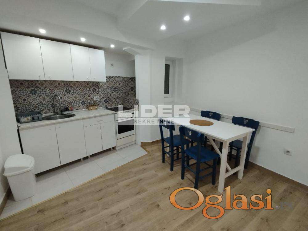 Kompletno renoviran i opremljen, uknjižen i odmah useljiv. PROSTORIJE: dnevna soba, kuhinja sa trpezarijom, spavaća soba, kupatilo. agencijska provizija 2%