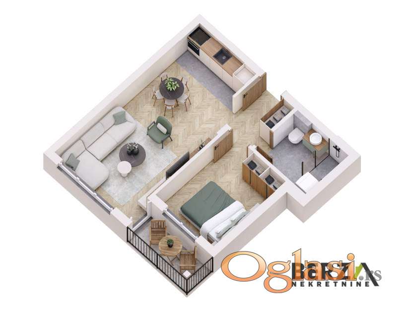Agencijska šifra: 1007859. Prodaje se dvosoban stan na prvom spratu zgrade u izgradnji na Adicama. Sastoji se od dnevnog boravka sa kuhinjom i trpezarijom, spavaće sobe, kupatila i terase. Rok izgradnje je oktobar 2026. godine. Gradnja od kvalitetnog i pouzdanog investitora. Šestokomorna stolarija nemačkog profila, sigurnosna vrata čelične konstrukcije u prirodnoj boji drveta, staklene ograde na balkonima, tarket parket 14 mm troslojni, Geberit skriveni vodokotlić i bojler 80 L Gorenje, demit fasada, betonska krovna ploča od 20 cm + staklena vuna 20 cm. Moguć povrat PDV-a.Berza nekretnine, Novi Sad, reg broj posrednika 1020